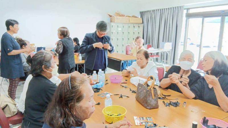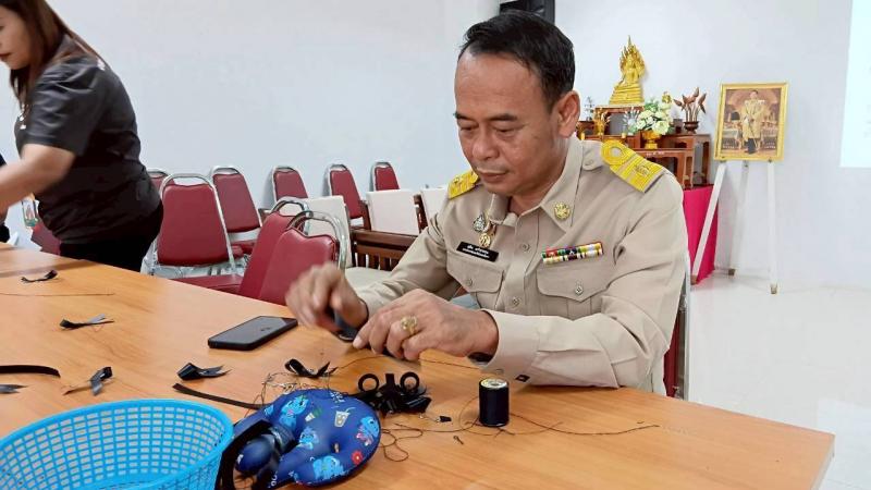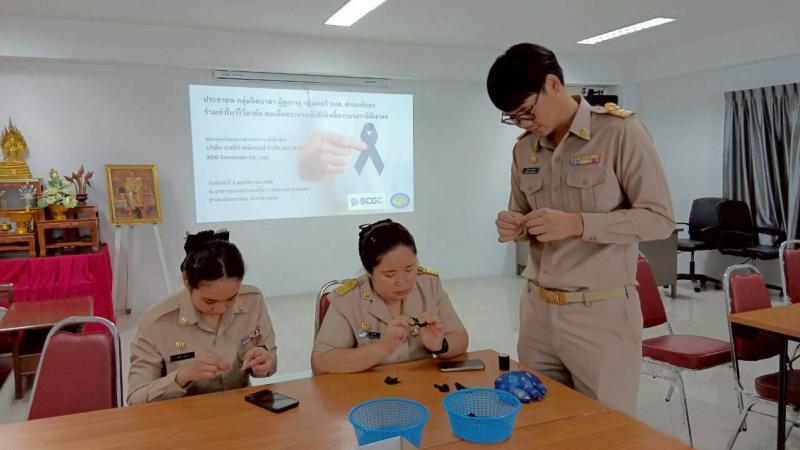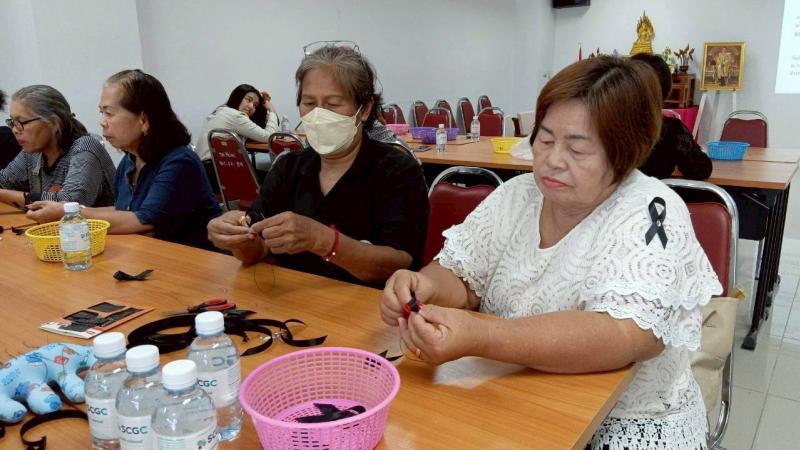 เทศบาลตำบลทับมา ร่วมกับบริษัท เอสซีจี เคมิคอลส์ จำกัด (มหาชน) ผู้สูงอายุ กลุ่มสตรี อผส. ประชาชนและจิตอาสาตำบลทับมา ประดิษฐ์โบว์สีดำ ถวายความอาลัย "สมเด็จพระพันปีหลวง"