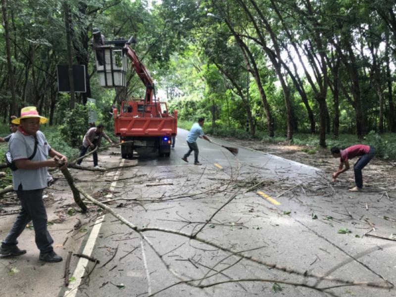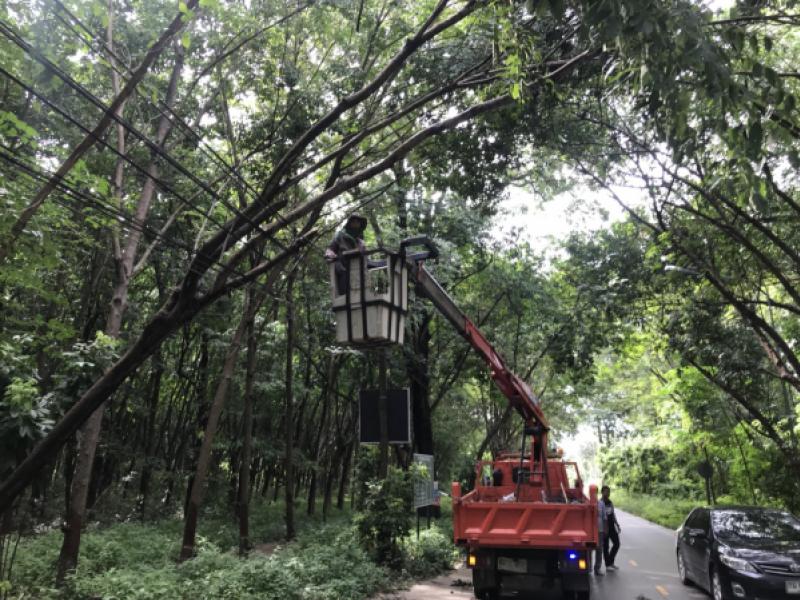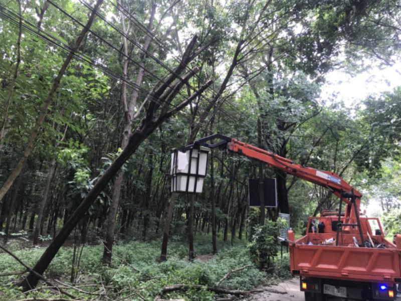 เจ้าหน้าที่กองช่างลงพื้นที่ตัดต้นไม้ที่ล้มทับสายไฟฟ้า บริเวณหมู่ที่ 1 สายทับมา - เกาะพรวด (5 ภาพ)