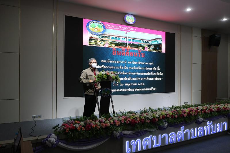 รายละเอียด : วันที่ 30 พฤษภาคม 2566 เวลา 09.00 น. นายประเสริฐ วงษ์ศรี นายกเทศมนตรีตำบลทับมา กล่าวต้อนรับศึกษาดูงานจากคณะสังคมสงเคราะห์ศาสตร์ มหาวิทยาลัยธรรมศาสตร์ ร่วมกับ สถาบันพัฒนาบุคลากรท้องถิ่น กรมส่งเสริมการปกครองท้องถิ่นกระทรวงมหาดไทย จัดอบรมหลักสูตร นักบริหารงานสวัสดิการสังคม (อำนวยการท้องถิ่นระดับต้น) โดยมีคณะผู้บริหาร สมาชิกสภาฯ หัวหน้าส่วนราชการ ร่วมต้อนรับ นำโดยอาจารย์ ดร.ปรีดี โชติช่วง อดีตรองปลัดกระทรวงการท่องเที่ยวและกีฬา และนายณัฐวุฒิ ตุงคนาคร ประธานรุ่น คณะศึกษาดูงานประกอบด้วย นักบริหารงานสวัสดิการสังคม (อำนวยการท้องถิ่นระดับต้น) จำนวน 58 คน มาศึกษาดูงานเรื่องแผนพัฒนาท้องถิ่นและโครงการบริการทางสังคม โดยมีนางสาวเรวีญา ขจิตเนติธรรม ปลัดเทศบาลตำบลทับมา , นางรำไพ จันทะโพธิ์ ผู้อำนวยการกองสวัสดิการสังคม , นางทิพย์ เจริญคุณ หัวหน้าฝ่ายสังคมสงเคราะห์ เป็นผู้บรรยายพิเศษแก่คณะศึกษาดูงาน พร้อมเยี่ยมชมศูนย์บริการและฟื้นฟูสำหรับผู้สูงอายุในชุมชนเทศบาลตำบลทับมา Thapma Day Care Center และวิสาหกิจชุมชนส่งเสริมอาชีพผู้เลี้ยงชันโรงบ้านทับมา ณ อาคารอเนกประสงค์เทศบาลตำบลทับมา (ชั้น 5)
