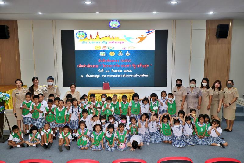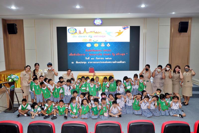 รายละเอียด : วันที่ 18 กันยายน 2566 เวลา 10.00 น. นายประเสริฐ วงษ์ศรี นายกเทศมนตรีตำบลทับมา มอบหมายให้นายชูชาติ คงทน รองนายกเทศมนตรีตำบลทับมา เป็นประธานในพิธีลงนามบันทึกข้อตกลง MOU ตามโครงการวัด ประชา รัฐ สร้างสุข กับ 6 องค์กรในพื้นที่ ประกอบด้วย พระครูปริยัติสุวัฒนาภรณ์ เจ้าคณะตำบลทับมา เจ้าอาวาสวัดทับมา พระครูปลัดอภิชัย อภิชโย เจ้าอาวาสวัดเขาโบสถ์ นายสโพร วงษ์ศรี กำนันตำบลทับมา นางสาวดนิตา บำรุงสุนทร หัวหน้าโรงพยาบาลส่งเสริมสุขภาพตำบลทับมา นางสุภาวดี ปิติทานันท์ ผู้อำนวยการโรงเรียนชุมชนวัดทับมา และ นางสาวณัฐติรัตน์ เชิดชู ผู้อำนวยการโรงเรียนอนุบาลทับมา ในการขับเคลื่อนโครงการวัด ประชารัฐ สร้างสุข โดยมีนายยุทธนา ปิงชัย รองปลัดเทศบาลตำบลทับมา เป็นผู้กล่าววัตถุประสงค์การจัดงานในครั้งนี้ เพื่อการพัฒนาที่ยั่งยืน ด้วยแนวทาง 3-5-7-9 คือ 3 พันธกิจ 5 ส.7 ขั้นตอน 9 พื้นที่ ที่ทุกภาคส่วนมีส่วนร่วม เพื่อจัดการสิ่งแวดล้อมที่เอื้อต่อสุขภาพ รวมถึงกิจกรรมเชิงพุทธ โดยก่อให้เกิดความเชื่อมโยง และสัมพันธภาพที่ดีให้เกิดขึ้นระหว่างวัดกับชุมชน ทำให้พระสงฆ์มีสุขภาพที่แข็งแรง โดยการจับคู่กับวัด ศาสนสถาน สถานศึกษาในสังกัด หรือสถานศึกษาในพื้นที่ และภาคีเครือความร่วมมือในระดับพื้นที่ของตำบล เพื่อร่วมกันพัฒนาวัด ชุมชน ประชาชน สถานศึกษาสืบไป ณ ที่ห้องประชุม ชั้น 5 อาคารอเนกประสงค์ เทศบาลตำบลทับมา