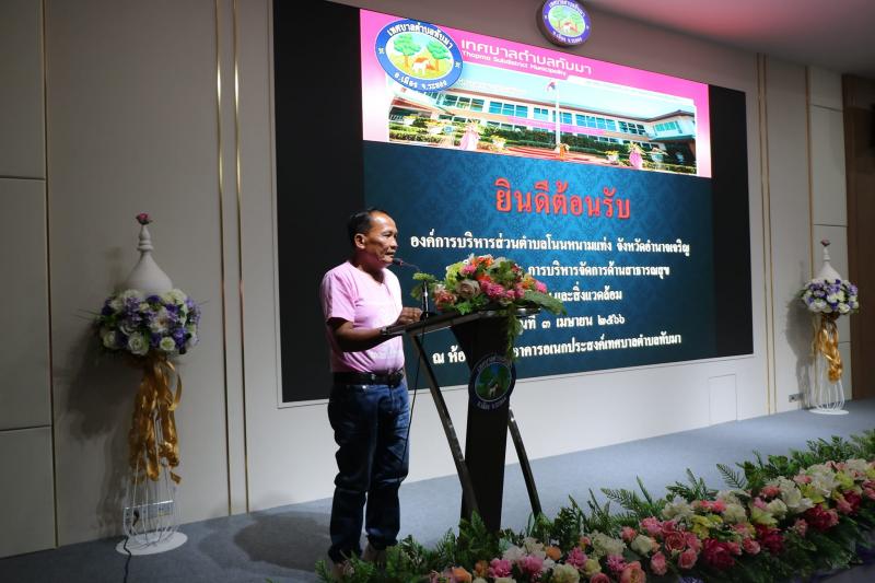 รายละเอียด : วันที่ 3 เมษายน 2566 เวลา 09.30 น. นายประเสริฐ วงษ์ศรี นายกเทศมนตรีตำบลทับมา กล่าวต้อนรับคณะศึกษาดูงาน พร้อมด้วยคณะผู้บริหาร สมาชิกสภาฯ หัวหน้าส่วนราชการ ร่วมต้อนรับคณะศึกษาดูงานจากองค์การบริหารส่วนตำบลโนนหนามแท่ง จังหวัดอำนาจเจริญ นำโดยนายเทียม สุพรรณ นายกองค์การบริหารส่วนตำบลโนนหนามแท่ง คณะศึกษาดูงานประกอบด้วยคณะผู้บริหาร สมาชิกสภาฯ แกนนำเครือข่ายด้านสาธารณสุข สุขภาพ และสิ่งแวดล้อม จำนวน 88 คน มาศึกษาดูงานด้านการบริหารจัดการด้านสาธารณสุข สุขภาพ และสิ่งแวดล้อมในชุมชน โดยมีนางสาวเรวีญา ขจิตเนติธรรม ปลัดเทศบาลตำบลทับมา เป็นผู้บรรยายพิเศษแก่คณะศึกษาดูงานในครั้งนี้ ณ ห้องประชุมชั้น 5 อาคารอเนกประสงค์เทศบาลตำบลทับมา (ตึก 5 ชั้น)