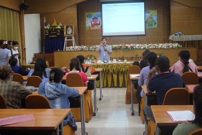 รายละเอียด : วันที่ 6 กันยายน 2566 เวลา 09.00 น. นายประเสริฐ วงษ์ศรี นายกเทศมนตรีตำบลทับมา เป็นประธานเปิดโครงการปรับปรุงภาวะโภชนาการและสุขภาพเด็กของสมเด็จพระเทพรัตนราชสุดาฯ สยามบรมราชกุมารี ประจำปีงบประมาณ 2566 มีนางสาวสุพิชชา ดวงจันทร์ หัวหน้าฝ่ายบริการสาธารณสุข เป็นผู้กล่าววัตถุประสงค์การจัดโครงการฯ เพื่อให้ผู้ปกครองหรือผู้ดูแลสามารถจัดอาหารที่มีคุณค่าและเหมาะสมกับวัย ให้แก่เด็กที่ขาดสารอาหารได้อย่างถูกต้อง และเพื่อให้เด็กได้รับสารอาหารที่เพียงพอ มีภาวะโภชนาการปกติ มีสุขภาพอนามัยที่แข็งแรงสมบูรณ์ ***ภายในงานบรรยายให้ความรู้เรื่องการดูแลสุขภาพ และการประเมินภาวะสุขภาพเด็ก การจัดการเตรียมอาหารให้เหมาะกับเด็กในแต่ละวัย และสาธิตอาหารที่เหมาะสมตามภาวะโภชนาการ วิทยากรโดยคุณวนิดา ดีชัยยะ นักโภชนาการปฏิบัติการ โรงพยาบาลระยอง ผู้เข้าร่วมโครงการฯ ประกอบด้วยผู้ปกครองเด็กโรงเรียนอนุบาลทับมา จำนวน 60 คน ณ ห้องประชุมโรงเรียนอนุบาลทับมา ตำบลทับมา อำเภอเมืองระยอง จังหวัดระยอง