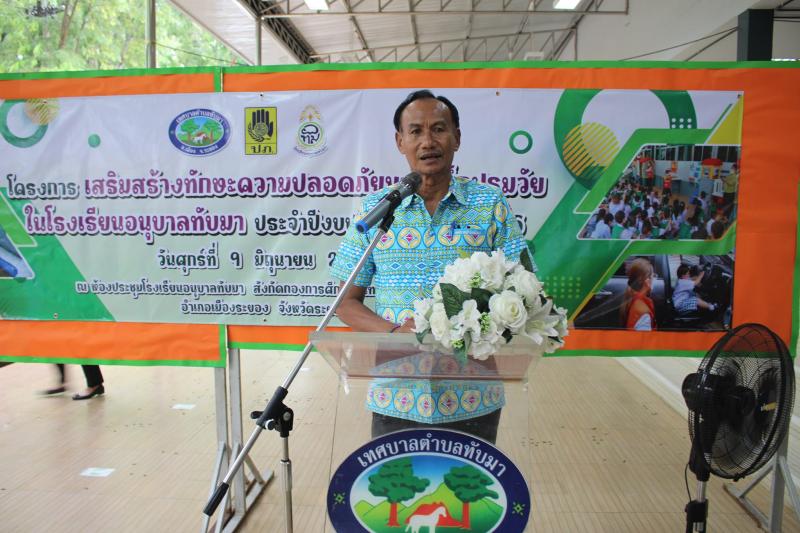 รายละเอียด : วันที่ 9 มิถุนายน 2566 เวลา 09.00 น. นายประเสริฐ วงษ์ศรี นายกเทศมนตรีตำบลทับมา เป็นประธานเปิดโครงการเสริมสร้างทักษะความปลอดภัยของเด็กปฐมวัย ในโรงเรียนอนุบาลทับมา ประจำปีงบประมาณ พ.ศ.2566 มีนางสาวณัฐติรัตน์ เชิดชู ผู้อำนวยการกองศึกษา เทศบาลตำบลทับมา เป็นผู้กล่าวรายงานวัตถุประสงค์เพื่อให้เด็กนักเรียนมีความรู้ ความเข้าใจในขั้นตอน และวิธีการเสริมสร้างทักษะความปลอดภัยให้เกิดกับตนเอง ฝึกปฏิบัติและสามารถเอาตัวรอดได้เมื่อเกิดเหตุการณ์จริง ภายในงานมีการลงนามบันทึกข้อตกลง (MOU) ระหว่างเทศบาลตำบลทับมา และสำนักงานป้องกันและบรรเทาสาธารณภัยจังหวัดระยอง เพื่อบูรณาการร่วมกันในการดำเนินโครงการฯ มีการบรรยายให้ความรู้เกี่ยวกับ การเอาตัวรอดกรณีเด็กติดในรถยนต์ กรณีเด็กจมน้ำ ถูกไฟฟ้าช็อตและการเอาตัวรอดกรณีไฟไหม้ การแบ่งกลุ่มกิจกรรมเพื่อฝึกภาคปฏิบัติและฝึกซ้อมการเอาตัวรอดเมื่อเกิดเหตุการณ์จริง วิทยากรกลุ่มนำโดยนายอัธยา นวลอุทัย หัวหน้าสำนักงานป้องกันและบรรเทาสาธารณภัย จังหวัดระยอง ผู้เข้าร่วมโครงการประกอบด้วยคณะผู้บริหาร หัวหน้าส่วนราชการ บุคลากรทางการศึกษา นักเรียนระดับชั้นอนุบาล 1-3 จำนวน 355 คน ณ โรงเรียนอนุบาลทับมา ตำบลทับมา อ.เมืองระยอง จ.ระยอง