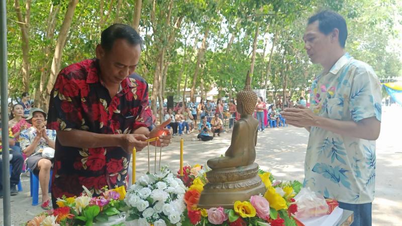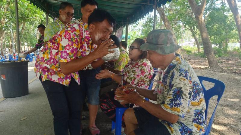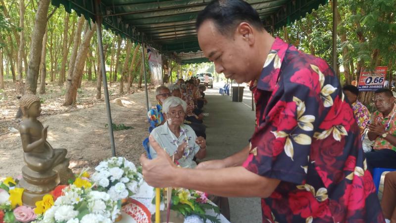 เทศบาลตำบลทับมา ร่วมสืบสานประเพณีสงกรานต์ จัดกิจกรรมรดน้ำขอพรผู้สูงอายุ เสริมสร้างความกตัญญูและความสามัคคีในชุมชน หมู่ที่ 6 บ้านหนองโพรง แหลมทองหลาง