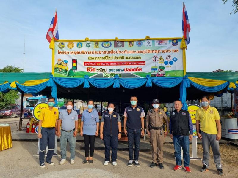 งานป้องกันและบรรเทาสาธารณภัย เทศบาลตำบลทับมา ดำเนินกิจกรรมในวันจันทร์ที่ 2 มกราคม 2566 ภายใต้โครงการจุดบริการประชาชนเพื่อป้องกันและลดอุบัติเหตุทางจราจรช่วงเทศกาลปีใหม่ พ.ศ. 2566