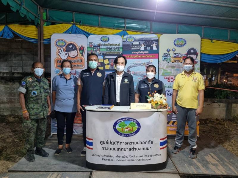 รายละเอียด : วันจันทร์ที่ 2 มกราคม 2566 งานป้องกันและบรรเทาสาธารณภัย เทศบาลตำบลทับมา ดำเนินกิจกรรมภายใต้โครงการจุดบริการประชาชนเพื่อป้องกันและลดอุบัติเหตุทางจราจรช่วงเทศกาลปีใหม่ พ.ศ. 2566 โดยมีนางรำไพ จันทะโพธิ์ ผู้อำนวยการกองสวัสดิการสังคม รักษาราชการแทน ผู้อำนวยการกองยุทธศาสตร์และงบประมาณ เทศบาลตำบลทับมา, ผกก.สภ.เมืองระยอง ร่วมด้วยเจ้าหน้าที่ตำรวจสภ.อ.เมืองระยอง และเจ้าหน้าที่หน่วยงานราชการ ฯลฯ เข้าตรวจเยี่ยม ให้กำลังใจเจ้าหน้าที่ประจำจุดบริการประชาชน พร้อมมอบเครื่องดื่ม อาหารอุปโภคบริโภคให้กับจุดบริการประชาชน ทับมา **ทั้งนี้ ระหว่างวันที่ 29 ธันวาคม 2565 - 4 มกราคม 2566 ณ บริเวณถนนทับมา - เขาโบสถ์ หมู่ที่ 4 ตำบลทับมา อำเภอเมืองระยอง จังหวัดระยอง ภายในจุดบริการประชาชน บริการฟรี น้ำดื่ม กาแฟ ห้องน้ำ และข้อมูลการท่องเที่ยว ติดต่อสอบถามรายละเอียดเพิ่มเติมได้ที่ งานป้องกันและบรรเทาสาธารณภัย สำนักปลัด เทศบาลตำบลทับมา หมายเลขโทรศัพท์ 09-2903-4000 # สายด่วน 199 แจ้งเหตุตลอด 24 ชั่วโมง**