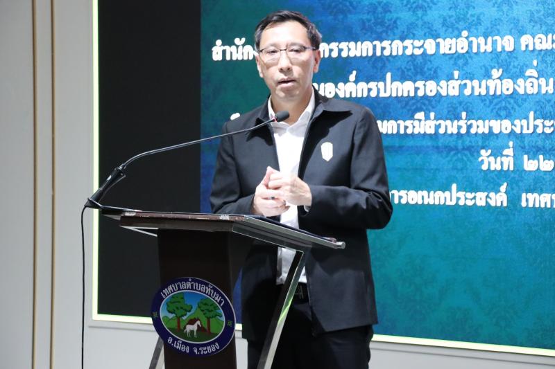description วันที่ 22 มกราคม 2569 เวลา 13.30 น. นายสุทิน แก้วประถม นายกเทศมนตรีตำบลทับมา พร้อมด้วยคณะผู้บริหาร สมาชิกสภาเทศบาลตำบลทับมา , นางสาวเรวีญา ขจิตเนติธรรม ปลัดเทศบาลตำบลทับมา หัวหน้าส่วนราชการ กำนัน ผู้ใหญ่บ้าน และผู้นำชุมชน ร่วมให้การต้อนรับนายอนุ แย้มแสง ผู้อำนวยการสำนักงานงานคณะกรรมการการกระจายอำนาจให้แก่องค์กรปกครองส่วนท้องถิ่น สำนักงานปลัดสำนักนายกรัฐมนตรี นำคณะเดินทางไปศึกษาดูงานการขับเคลื่อนภารกิจด้านการกระจายอำนาจขององค์กรปกครองส่วนท้องถิ่นเชิงประจักษ์ในพื้นที่จังหวัดระยองของเทศบาลตำบลทับมา ภายใต้ โครงการส่งเสริมภาพลักษณ์และกำหนดยุทธศาสตร์ประชาสัมพันธ์การกระจายอำนาจให้แก่องค์กรปกครองส่วนท้องถิ่น เข้าศึกษาดูงานด้านนวัตกรรมที่ได้รับรางวัลการบริหารจัดการที่ดีของเทศบาลตำบลทับมา ระบบฐานข้อมูลทรัพยากรท้องถิ่นเทศบาลตำบลทับมา ประเภทโดดเด่น ปี 2566 การสร้างความเข้มแข็งและยั่งยืนให้ระบบเฝ้าระวังฝนตกหนักและน้ำท่วม ระบบการดูแลผู้สูงอายุ เราจะสูงวัยไปด้วยกัน พร้อมกับเยี่ยมชมศูนย์ส่งเสริมการมีส่วนร่วมของประชาชน กลุ่มส่งเสริมอาชีพผู้เลี้ยงชันโรงชุมชนบ้านทับมา ทั้งนี้การเดินทางมาศึกษาดูงานดังกล่าว มีวัตถุประสงค์ เพื่อประชาสัมพันธ์การกระจายอำนาจให้แก่องค์กรปกครองส่วนท้องถิ่น โดยมีวัตถุประสงค์เพื่อบูรณาการและสร้างเครือข่ายการประชาสัมพันธ์ส่งเสริมการกระจายอำนาจที่เข้มแข็งระหว่างหน่วยงานภาคีเครือข่ายและเผยแพร่ผลการดำเนินงานองค์กรปกครองส่วนท้องถิ่นที่เป็นแบบอย่างที่ดีให้แก่องค์กรปกครองส่วนอื่นต่อไป ภาพ/ข่าว : ระพีพัฒน์ person admin