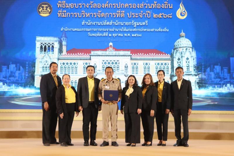 "เทศบาลตำบลทับมา เข้ารับรางวัลองค์กรปกครองส่วนท้องถิ่นที่เข้าสู่รอบการประเมินในรอบสุดท้าย "ประเภทดีเลิศ" ประจำปีงบประมาณ พ.ศ. 2568"