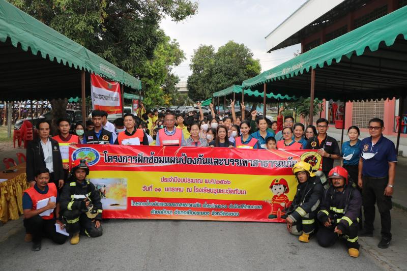 รายละเอียด : วันพุธที่ 11 มกราคม 2566 เวลา 09.00 น. นายประเสริฐ วงษ์ศรี นายกเทศมนตรีตำบลทับมา เป็นประธานเปิดโครงการฝึกซ้อมแผนป้องกันและบรรเทาสาธารณภัย ประจำปีงบประมาณ พ.ศ.2566 มีนางสาวเรวีญา ขจิตเนติธรรม ปลัดเทศบาลตำบลทับมา เป็นผู้กล่าววัตถุประสงค์การจัดโครงการฯ เพื่อให้ผู้เข้ารับการอบรมมีความรู้ความเข้าใจเกี่ยวกับข้อกฎหมายการป้องกันและบรรเทาสาธารณภัยและมาตรฐานความปลอดภัยในอาคาร เข้าใจสาเหตุของการเกิดอัคคีภัยและทฤษฎีการเกิดอัคคีภัย การระงับเหตุอัคคีภัยและหลักการดับเพลิงได้อย่างถูกต้อง มีทักษะการเคลื่อนย้ายและการปฐมพยาบาลผู้ได้รับบาดเจ็บอัคคีภัยในเบื้องต้นได้ดีและมีประสิทธิภาพ มีความรู้ความเข้าใจในการฝึกซ้อมแผนการอพยพหนีไฟและดำเนินการภาคสนามตามขั้นตอนการปฏิบัติการฝึกซ้อมแผนอัคคีภัย ภายในงานมีการลงนามบันทึกข้อตกลง MOU ร่วมกันกับสำนักงานป้องกันและบรรเทาสาธารณภัยจังหวัดระยอง โรงเรียนชุมชนวัดทับมา และมูลนิธิสว่างพรกุศลระยองจุดทับมา มีการบรรยายเรื่องข้อกฎหมายการป้องกันและบรรเทาสาธารณภัยและมาตรฐานความปลอดภัยในอาคาร และทฤษฎีการเกิดอัคคีภัย การระงับเหตุอัคคีภัย, หลักการดับเพลิง, การเคลื่อนย้าย/การปฐมพยาบาลผู้ได้รับบาดเจ็บจากอัคคีภัย และการฝึกภาคปฏิบัติเทคนิคการใช้อุปกรณ์เครื่องมือดับเพลิงและการควบคุมไฟที่เกิดจากน้ำมันและแก๊ส การฝึกซ้อมแผนการอพยพหนีไฟและดำเนินการภาคสนามตามขั้นตอนการปฏิบัติการฝึกซ้อมแผนอัคคีภัย วิทยากรกลุ่มจากสำนักงานป้องกันและบรรเทาสาธารณภัยจังหวัดระยอง โดยนายเจษฎา สุนทรารชุน และนายนราพงค์ มุกดาประวัติ ผู้เข้าร่วมโครงการประกอบด้วยคณะผู้บริหาร สมาชิกสภาฯ เจ้าหน้าที่เทศบาลตำบลทับมา องค์กรการกุศล ผู้อำนวยการโรงเรียน คณะครูและนักเรียนโรงเรียนชุมชนวัดทับมา จำนวน 50 คน ณ โรงเรียนชุมชนวัดทับมา ตำบลทับมา อำเภอเมืองระยอง จังหวัดระยอง
