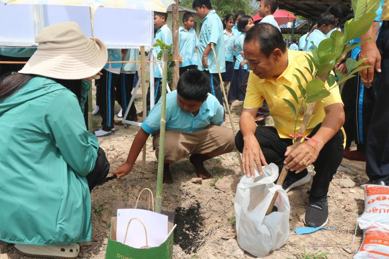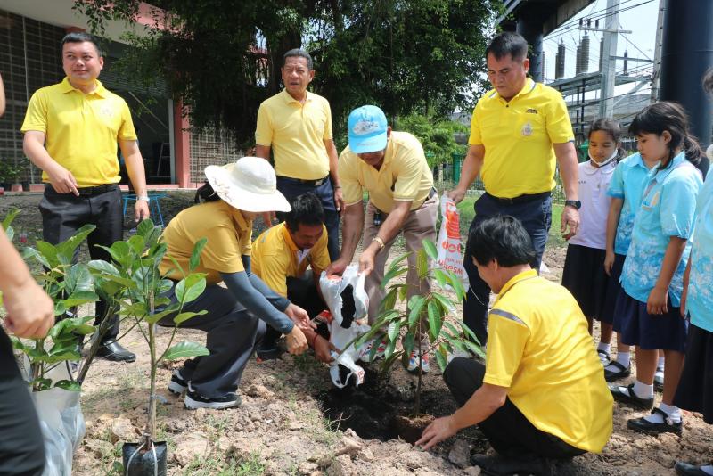 เทศบาลตำบลทับมา ร่วมกิจกรรมปลูกต้นไม้ผลยืนต้น เฉลิมพระเกียรติฯ เนื่องในโอกาสวันเฉลิมพระชนมพรรษา 73 พรรษา พระบาทสมเด็จพระเจ้าอยู่หัว