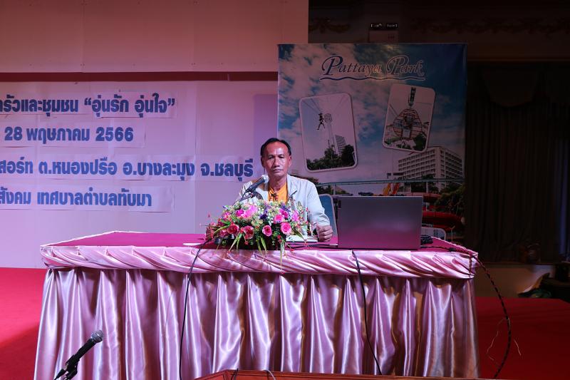 รายละเอียด : วันที่ 27 พฤษภาคม 2566 นายประเสริฐ วงษ์ศรี นายกเทศมนตรีตำบลทับมา เป็นประธานเปิดโครงการครอบครัวและชุมชน "อุ่นรัก อุ่นใจ" ประจำปีงบประมาณ พ.ศ. 2566 ซึ่งจัดระหว่างวันที่ 27 - 28 พฤษภาคม 2566 มีนายชูชาติ คงทน รองนายกเทศมนตรีตำบลทับมา เป็นผู้กล่าววัตถุประสงค์การจัดโครงการฯ เพื่อให้เด็ก เยาวชน พ่อ แม่ ผู้ปกครอง ผู้นำชุมชน กลุ่มแม่บ้านเกษตรกร กลุ่มสตรี กลุ่มอาสาสมัคร ตระหนักถึงความสำคัญของสถาบันครอบครัว สถาบันพื้นฐานที่เป็นหลักของสังคม เป็นรากฐานที่สำคัญของการพัฒนาคนและสังคม เพื่อสร้างความรักความเข้าใจและความสัมพันธ์ที่ดีระหว่างสมาชิกในครอบครัว บามบามหน้าที่ของสถาชิกครอบครัว และมีส่วนร่วมในการป้องกันและดแก้ไขปัญหา ภายในงานมีการบรรยายให้ความรู้ในหัวข้อ บทบาทของสมาชิกในครอบครัว และองค์ความรู้ในการสร้างความสัมพันธภาพครอบครัว และกิจกรรมแบ่งกลุ่ม Walk rally พร้อมเยี่ยมชมศูนย์อนุรักษ์พันธุ์เต่าทะเลและเรือหลวงจักรีนฤเบศร์ วิทยากรโดย อาจารย์ไพโรจน์ แสนจันทร์ และทีมงาน โดยมีผู้เข้าร่วมโครงการประกอบด้วย เด็กและเยาวชน พ่อ แม่ ผู้ปกครอง ผู้นำชุมชน กลุ่มแม่บ้านเกษตรกร กลุ่มสตรี กลุ่มอาสาสมัคร จำนวน 120 คน ณ โรงแรม พัทยา ปาร์ค บีช รีสอร์ท และฐานทัพเรือสัตหีบ