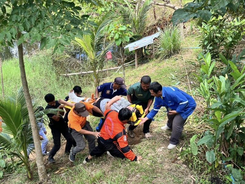 เทศบาลตำบลทับมา ลงพื้นที่ช่วยเหลือผู้ประสบเหตุพลัดตกบ่อน้ำ หมู่ 7 บ้านเขาโบสถ์