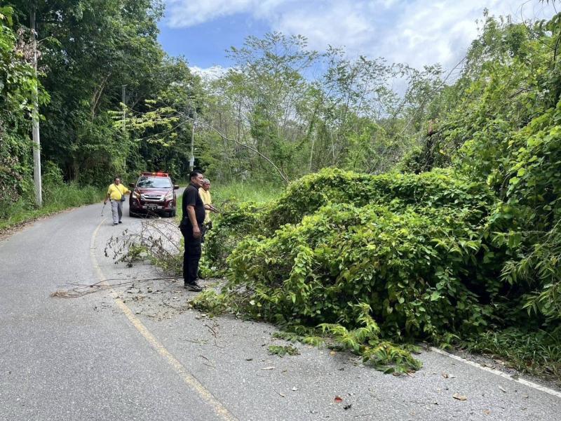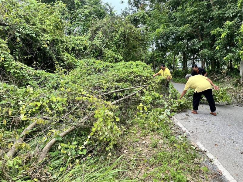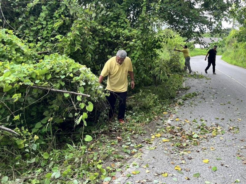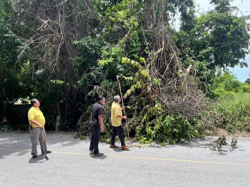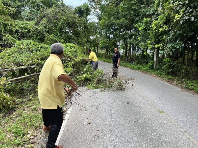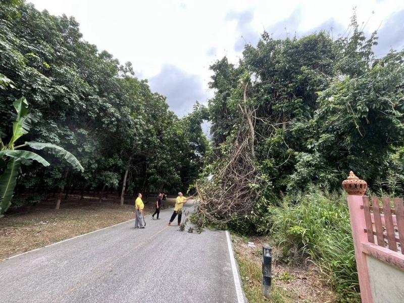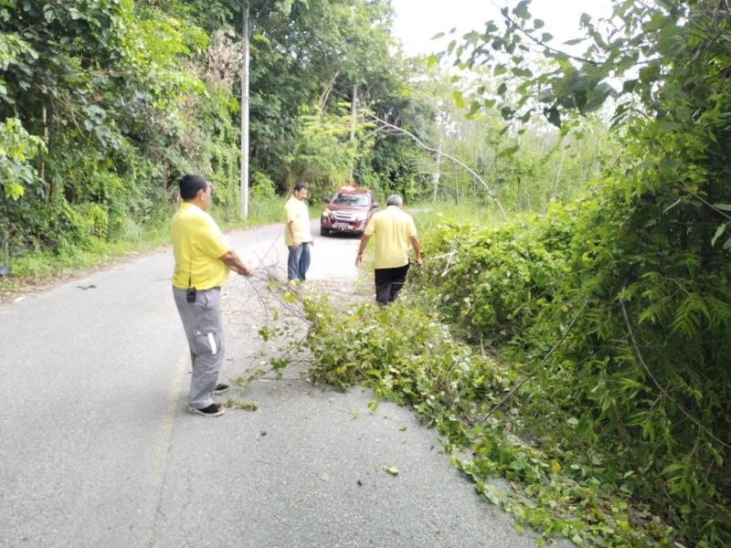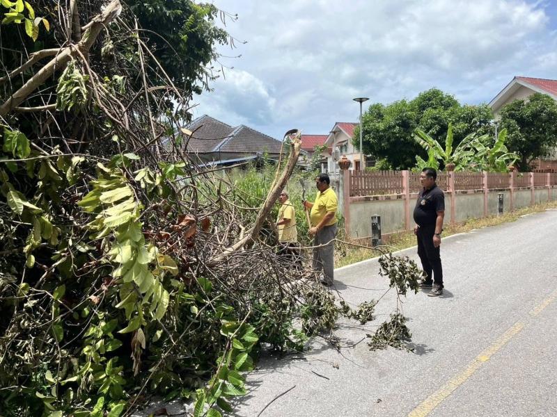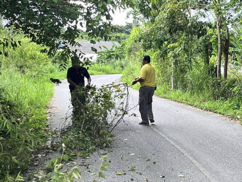 เทศบาลตำบลทับมา ลงพื้นที่ตัดแต่งกิ่งไม้หักโค่น ป้องกันอันตรายประชาชน