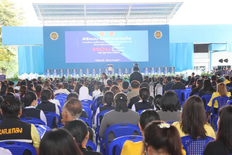 รายละเอียด : วันที่ 28 ตุลาคม 2568 เวลา 09.00 น. นายประเสริฐ วงษ์ศรี นายกเทศมนตรีตำบลทับมา มอบหมายให้ นายฉัตร แก่กล้า รองนายกเทศมนตรีตำบลทับมา เข้าร่วมพิธีลงนามความร่วมมือ (MOU) ที่วิทยาลัยเทคนิคระยองได้จัดขึ้น ภายในงานมีผู้ร่วมลงนามครั้งนี้ได้แก่ โรงเรียนประถมศึกษา โรงเรียนมัธยมศึกษา ชุมชน องค์กรปกครองส่วนท้องถิ่น องค์กรรัฐวิสาหกิจ สถาบันการศึกษา อุดมศึกษาสถานประกอบการทั้งในและต่างประเทศ จำนวน 118 แห่ง เพื่อจัดการศึกษาอาชีวศึกษาระดับทวิภาคีร่วมเป็นเครือข่ายและพัฒนาการจัดการศึกษาในด้านต่างๆ ร่วมกัน โดยมีนายวิทวัต ปัญจมะวัต รองเลขาธิการคณะกรรมการการอาชีวศึกษา(สอศ.) เป็นประธานในพิธีลงนามความร่วมมือจัดการศึกษาอาชีวศึกษาระบบทวิภาคี เพื่อร่วมพัฒนาคนสมรรถนะสูง สร้างอาชีพที่ทันสมัย ด้วยนวัตกรรมและเทคโนโลยี และนายกิตติพงค์ อุตตมะเวทิน ผู้อำนวยการวิทยาลัยเทคนิคระยอง กล่าวรายงานวัตถุประสงค์ของการจัดงานในครั้งนี้ ณ โดมอเนกประสงค์วิทยาลัยเทคนิคระยอง ต.ท่าประดู่ อ.เมือง จ.ระยอง