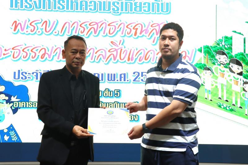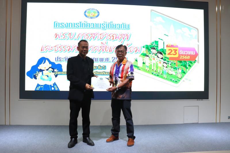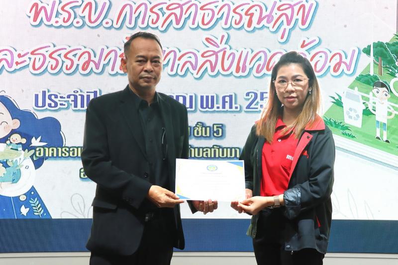 description วันที่ 23 ธันวาคม 2568 เวลา 08.30 น. นายสุทิน แก้วประถม นายกเทศมนตรีตำบลทับมา เป็นประธานกล่าวเปิดโครงการให้ความรู้เกี่ยวกับ พ.ร.บ. การสาธารณสุขและธรรมาภิบาลสิ่งแวดล้อม ประจำปีงบประมาณ พ.ศ. 2569 มีนางสาวเรวีญา ขจิตเนติธรรม ปลัดเทศบาลตำบลทับมา เป็นผู้กล่าววัตถุประสงค์การจัดโครงการฯ เพื่อให้ความรู้และเสริมสร้างความเข้าใจเกี่ยวกับ พ.ร.บ. การสาธารณสุข พ.ศ.2535 บทบาทหน้าที่ตามกฎหมายแก่ผู้ประกอบการในเขตพื้นที่ตำบลทับมา และเพื่อสนับสนุนให้ผู้ประกอบการเกิดความตระหนักถึงปัญหาสิ่งแวดล้อม จากการประกอบกิจการและผลกระทบต่อสุขภาพ ภายในโครงการมีการบรรยายให้ความรู้เรื่องบทบาทและหน้าที่ของสถานประกอบกิจการและชุมชนในการรักษาสิ่งแวดล้อม การพัฒนาชุมชนและโรงงาน เพื่อก้าวไปสู่เมืองอุตสาหกรรมเชิงนิเวศ วิทยากรโดย นางพิมพ์วิไล สีหาบุตร นักวิชาการสาธารณสุขปฏิบัติการ และเรื่องกฎหมายสิ่งแวดล้อมตามพระราชบัญญัติการส่งเสริมและรักษาคุณภาพสิ่งแวดล้อม พ.ศ. 2535 และพระราชบัญญัติการสาธารณสุข พ.ศ. 2535 และที่แก้ไขเพิ่มเติม วิทยากรโดยนายธรรมนูญ อัจริยะเมต นักวิชาการสาธารณสุขชำนาญการ จากสำนักงานสาธารณสุขจังหวัดระยอง ในการนี้ นายสุทิน แก้วประถม นายกเทศมนตรีตำบลทับมา มอบเกียรติบัตรให้แก่ผู้ที่เข้าร่วมอบรม โดยมีผู้เข้าร่วมโครงการฯ ประกอบด้วยผู้นำชุมชน สถานประกอบการ และประชาชนในเขตพื้นที่ตำบลทับมา จำนวน 70 คน ณ ห้องประชุมชั้น 5 อาคารอเนกประสงค์เทศบาลตำบลทับมา สอบถามรายละเอียดเพิ่มเติมได้ที่ กองสาธารณสุขและสิ่งแวดล้อม เทศบาลตำบลทับมา หมายเลขโทรศัพท์ 09-2895-7555 ภาพ/ข่าว : ประภัสสร person admin
