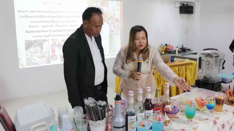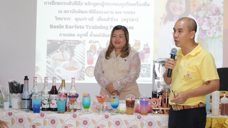 รายละเอียด : วันที่ 20 มิถุนายน 2567 นายประเสริฐ วงษ์ศรี นายกมนตรีตำบลทับมา พร้อมคณะผู้บริหาร ปิดโครงการอบรมยกระดับฝีมือ หลักสูตร ผู้ประกอบการธุรกิจเครื่องดื่ม (Beverage Business Entrepreneur) โดยมี สถาบันพัฒนาฝีมือแรงงาน 17 ระยอง โดยได้รับเกียรติจาก ดร.ณคัชรินทร์ วชิรวงศ์ภิญโญ หัวหน้าฝ่ายเทคโนโลยีชั้นสูง สถาบันพัฒนาฝีมือแรงงาน 17 ระยอง และคุณ ปราณี เอี่ยมสำโรง (ครูปลา) ประธานเจ้าหน้าที่บริหาร Coffee Zone Classic เป็นวิทยากรบรรยาย รวมระยะเวลาทั้งสิ้น 30 ชั่วโมง ระหว่างตั้งแต่ วันที่ 17-20 มิถุนายน 2567 ที่ผ่านมา ผู้เข้าร่วมอบรมนำความรู้ เพิ่มทักษะยกระดับฝีมือ ผู้ประกอบการธุรกิจเครื่องดื่ม ต่อยอดพัฒนาธุรกิจต่อไป ณ ห้องประชุมอเนกประสงค์เทศบาลตำบลทับมา ภาพ/ข่าว ระพีพัฒน์