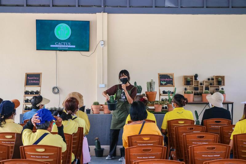 รายละเอียด : วันที่ 15 มีนาคม 2566 เวลา 09.00 น. นายประเสริฐ วงษ์ศรี นายกเทศมนตรีตำบลทับมา มอบหมายให้กองสวัสดิการสังคม เทศบาลตำบลทับมา พร้อมด้วยคณะกรรมการศูนย์บริการและถ่ายทอดเทคโนโลยีการเกษตรประจำตำบลทับมา นำโดยนายทองสุข ผ่องผาด ประธานศูนย์บริการและถ่ายทอดเทคโนโลยีการเกษตรฯ เข้าศึกษาดูงาน ณ ศูนย์การเรียนรู้อรุณฟาร์มวิลเลจ และเรียนรู้กิจกรรมภายใต้โครงการสนับสนุนศูนย์บริการและถ่ายทอดเทคโนโลยีการเกษตรประจำตำบลทับมา ประจำปีงบประมาณ พ.ศ. 2566 โดยมีวัตถุประสงค์เพื่อส่งเสริมการดำเนินงานของศูนย์ถ่ายทอดเทคโนโลยีการเกษตรประจำตำบลทับมา สร้างอาชีพ รายได้ ทั้งในระดับครัวเรือนและกลุ่มอาชีพ ภายในงานมีการบรรยายให้ความรู้ตามฐานการเรียนรู้ต่างๆ จำนวน 6 ฐาน ประกอบด้วย 1. ฐานเทคโนโลยีการเกษตร 2. ฐานสิ่งแวดล้อม 3. ฐานต้นอ่อน 4. ฐานกระบองเพชร 5. ฐานเพาะเลี้ยงเห็ด 6. ฐานฟาร์มปศุสัตว์ กิจกรรมฝึกปฏิบัติ การทำถุงผ้ามัดย้อม การเก็บไข่เป็ดมาทำไข่เค็ม เก็บผักไมโครกรีน และการทำก้อนเชื้อเห็ด โดยทีมวิทยากรจากศูนย์การเรียนรู้อรุณฟาร์มวิลเลจ โดยมีผู้เข้าร่วมโครงการประกอบด้วยคณะกรรมการศูนย์ฯ กลุ่มอาชีพ ทั้ง 8 หมู่บ้าน และเจ้าหน้าที่ จำนวน 40 คน