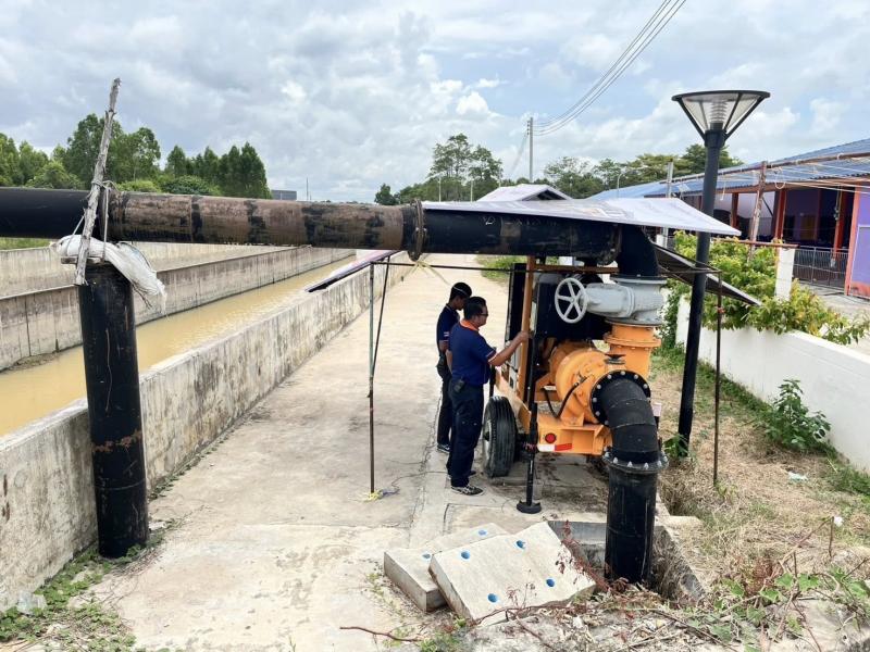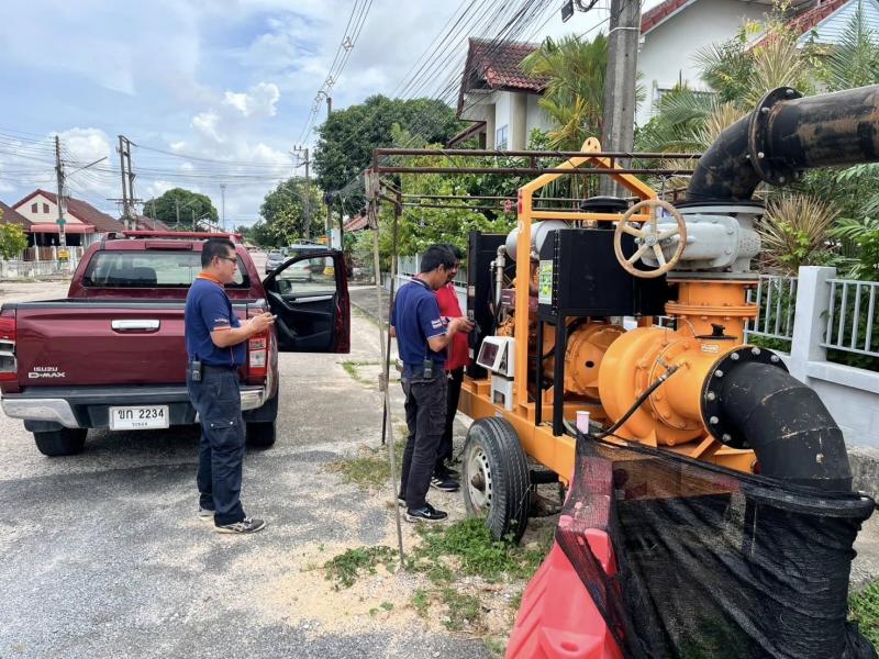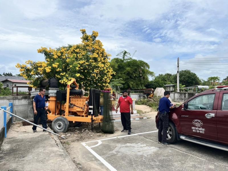 เทศบาลตำบลทับมา เตรียมความพร้อมเครื่องสูบน้ำเสริมจุดเสี่ยง รับมือฤดูฝน ป้องกันน้ำท่วมพื้นที่