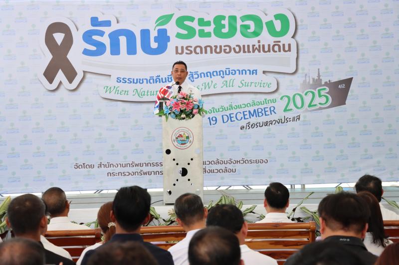 วันที่ 19 ธันวาคม 2568  เวลา 9.00 น. ณ บริเวณศาลาเฉลิมพระเกียรติฯ ลานอนุสรณ์เรือหลวงประแส ต.ปากน้ำกระแส อ.แกลง จ.ระยอง นายไตรภพ วงศ์ไตรรัตน์ ผู้ว่าราชการจังหวัดระยอง เป็นประธานเปิดกิจกรรมรักษ์ระยอง รักษ์มรดกของแผ่นดิน เนื่องในวันสิ่งแวดล้อมไทย ประจำปี 2568 ซึ่งจัดขึ้นภายใต้แนวคิด Rayong Together To Net Zero น้อมรำลึกในพระมหากรุณาธิคุณ...พระเจ้าอยู่หัวเป็นน้ำ ฉันจะเป็นป่า โดย นางสาวเรวีญา ขจิตเนติธรรม ปลัดเทศบาลตำบลทับมา เข้ารับมอบโล่เชิดชูเกียรติแก่องค์กรที่ทำชื่อเสียง ด้านทรัพยากรธรรมชาติและสิ่งแวดล้อมให้กับจังหวัดระยอง ประจำปี 2568 ในครั้งนี้ โดยมีกิจกรรมสิ่งแวดล้อมสร้างสรรค์ Rayong Mission ภารกิจ บำรุงต้นไม้ทรงปลูก, ปล่อยน้อง คืนเล คืนสมดุลย์โลก ปล่อยพันธุ์สัตว์น้ำ (เต่าทะเล จำนวน 10 ตัว และปลากะพง จำนวน 9,300 ตัว, รักษ์ระยอง รักษ์ชายหาดระยอง, ปล่อยของสมองเขียว นิทรรศการความรู้สิ่งแวดล้อม, ซุ้มอาหาร กินดีไม่มีเหลือ Zero Food Waste, ปลูกต้นกล้าความคิด KIDs เปลี่ยนโลก และการจัดแสดงกิจกรรมประกวดภาพวาด ในหัวข้อ รักษ์ระยอง รักษ์มรดกของแผ่นดิน น้อมรำลึกในพระมหากรุณาธิคุณ..พระเจ้าอยู่หัวเป็นน้ำ ฉันจะเป็นป่า ป่าที่ถวายความจงรักดีต่อน้ำพระเจ้าอยู่หัวสร้างอ่างเก็บน้ำ ฉันจะสร้างป่า รวมทั้งการจัดแสดงนิทรรศการ ทส.ระยอง น้อมรำลึกพระมหากรุณาธิคุณฯ ซึ่งเป็นการจัดกิจกรรมที่เป็นมิตรต่อสิ่งแวดล้อม ภายใต้ Rayong Together To Net Zero