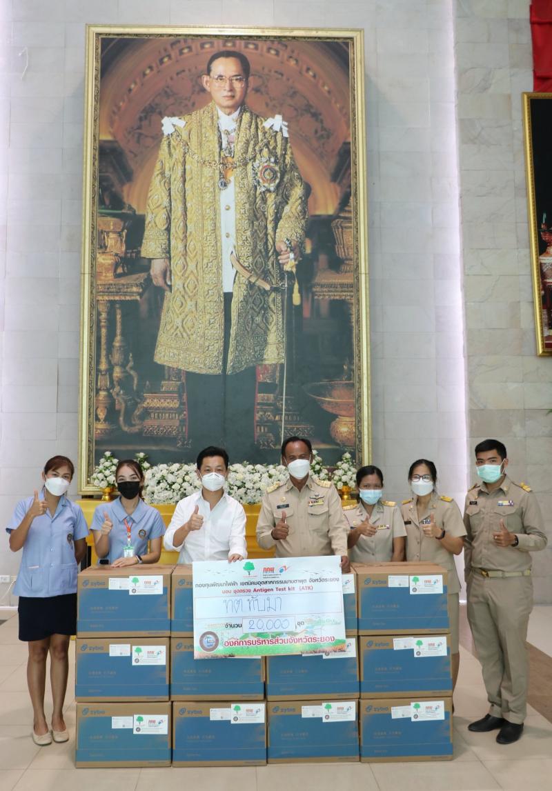 รายละเอียด : วันที่ 30 พฤษภาคม 2565 เวลา 10.00 น. นายประเสริฐ วงษ์ศรี นายกเทศมนตรีตำบลทับมา รับมอบชุดตรวจ Antigen Test Kit (ATK) จากองค์การบริหารส่วนจังหวัดระยองร่วมกับกองทุนไฟฟ้าเขตนิคมอุตสาหกรรมมาบตาพุด จังหวัดระยอง จำนวน 20,000 ชุด โดย นายกิตติ เกียรติ์มนตรี รองนายกองค์การบริหารส่วนจังหวัดระยอง พร้อมด้วยเจ้าหน้าที่ที่เกี่ยวข้อง เพื่อใช้การป้องกันและควบคุมการแพร่ระบาดของโรคติดเชื้อไวรัสโคโรนา 2019 (COVID-19) ต่อไป ณ องค์การบริหารส่วนจังหวัดระยอง อ.เมืองระยอง จ.ระยอง