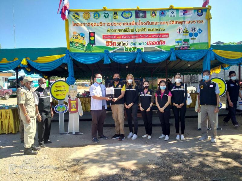 งานป้องกันและบรรเทาสาธารณภัย เทศบาลตำบลทับมา ดำเนินกิจกรรมในวันอังคารที่ 3 มกราคม 2566 ภายใต้โครงการจุดบริการประชาชนเพื่อป้องกันและลดอุบัติเหตุทางจราจรช่วงเทศกาลปีใหม่ พ.ศ. 2566