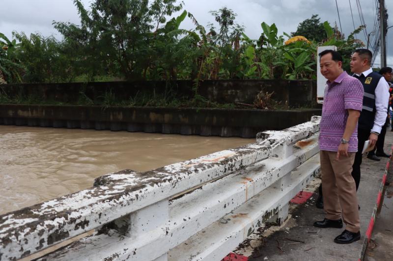 นายภาสกร เปิดเผยว่า เบื้องต้นได้มาติดตามสถานการณ์น้ำบริเวณสะพานแตง ภายในหมู่บ้านกรุงไทยทั้ง 2 ฝั่งคลองทับมา ซึ่งเป็นตัวปัญหาทำให้น้ำท่วม เนื่องจากตัวสะพานต่ำเกินไป ในสัปดาห์หน้าจะมีการพูดคุยแก้ไขปัญหากับส่วนราชการ และทางหมู่บ้านกรุงไทย และอาจจำเป็นจะตัองมีการตัังนิติบุคคลขึ้นมา เพื่อดำเนินการขออนุญาตปรับปรุงสะพาน ซึ่งทาง อบจ.ระยอง จะมีการจัดสรรงบประมาณเบื้องต้นมาปรับปรุงสะพานให้ หากมีการยกสะพานให้สูงขึ้นกว่าพนังกั้นน้ำแล้วบริเวณนี้ก็จะไม่มีน้ำท่วมอีก ขณะเดียวกันบริเวณตามซอยต่างๆ ที่มีน้ำจากคลองทับมาเอ่อล้นท่วมก็จะดึงเข้าระบบได้ ส่วนที่ประตูระบายน้ำปลายคลองทับมา ขณะนี้ชลประทานได้มีการเปิดประตูระบายทั้ง 4 บาน พยายามที่จะผลักดันน้ำออกไป ซึ่งทางจังหวัดพยายามที่จะแก้วิกฤตตรงนี้ให้สมบูรณ์ที่สุด โดยเฉพาะในช่วงวันที่ 10-11 ก.ย.นี้ ฝนอาจจะตกลงมาอีก ได้สั่งการใน อปท.แต่ละพื้นที่เตรียมกระสอบทรายเสริมในพื้นที่ที่ประสบน้ำท่วม และสแตนบายไว้ตลอด ส่วนการแก้ไขปัญหาระยะยาว จะมีเร่งวางแนวทางแก้ไขต่อไป.