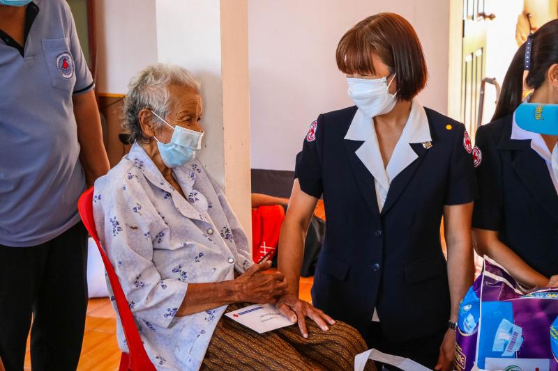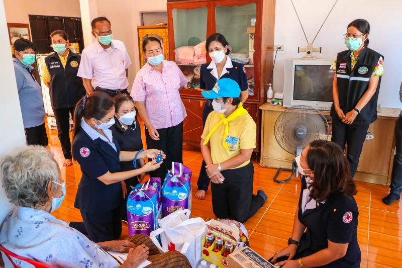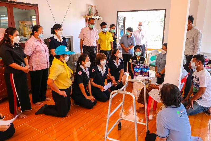 รายละเอียด : เทศบาลตำบลทับมา ร่วมกับเหล่ากาชาดจังหวัดระยอง ร่วมกิจกรรมเนื่องในวันสถาปนาสภากาชาดไทย ประจำปี 2565 วันที่ 26 เมษายน 2565 นายประเสริฐ วงษ์ศรี นายกเทศมนตรีตำบลทับมา นำคณะผู้บริหาร หัวหน้าส่วนราชการ เจ้าหน้าที่กองสวัสดิการสังคม และอสม.ตำบลทับมา พร้อมด้วยนางนิลวรรณ เหมะรักษ์ รองนายกเหล่ากาชาดจังหวัดระยอง นางศิโรรัตน์ เวหน กรรมการเหล่ากาชาดจังหวัดระยอง และจิตอาสาพระราชทานอำเภอเมืองระยอง ลงพื้นที่เยี่ยมบ้านผู้ป่วยติดเตียง ผู้พิการและผู้ยากไร้ในพื้นที่อำเภอเมืองระยอง พร้อมมอบถุงยังชีพของเทศบาลตำบลทับมา ทั้งนี้เหล่ากาชาดได้มอบถุงยังชีพและเงินช่วยเหลือแก่ครอบครัว เนื่องในวันสถาปนาสภากาชาดไทย ประจำปี 2565 ณ บ้านเลขที่ 26 หมู่ที่ 3 ตำบลทับมา อ.เมือง จ.ระยอง เพื่อสร้างขวัญกำลังใจให้กับผู้ป่วยและผู้ยากไร้ ให้ผู้ป่วยได้มีคุณภาพชีวิตที่ดีขึ้นต่อไป