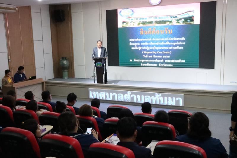 รายละเอียด : วันที่ 27 สิงหาคม 2568 เวลา 13.30 น. นายสมชาย กล่อมแก้ว รองนายกเทศมนตรีตำบลทับมา พร้อมด้วย นางสาวเรวีญา ขจิตเนติธรรม ปลัดเทศบาล ให้การต้อนรับคณะศึกษาดูงานจาก เทศบาลตำบลเขาฉกรรจ์ อำเภอเขาฉกรรจ์ จังหวัดสระแก้ว พร้อมด้วยหัวหน้าส่วนราชการ สมาชิกสภา และเจ้าหน้าที่ที่เกี่ยวข้อง จำนวน 80 คน เข้าศึกษาดูงานและแลกเปลี่ยนเรียนรู้ในหัวข้อเรื่อง "การบริหารกิจการบ้านเมืองที่ดี และศูนย์บริการและฟื้นฟูสำหรับผู้สูงอายุในชุมชนเทศบาลตำบลทับมา " มีนางสาวเรวีญา ขจิตเนติธรรม ปลัดเทศบาลตำบลทับมา เป็นผู้บรรยายพิเศษแก่คณะศึกษาดูงานในครั้งนี้ พร้อมเยี่ยมชมการดำเนินงานศูนย์บริการและฟื้นฟูสำหรับผู้สูงอายุในชุมชนเทศบาลตำบลทับมา (Thapma Day Care Center) ณ อาคารอเนกประสงค์ เทศบาลตำบลทับมา (ตึก 5 ชั้น)
