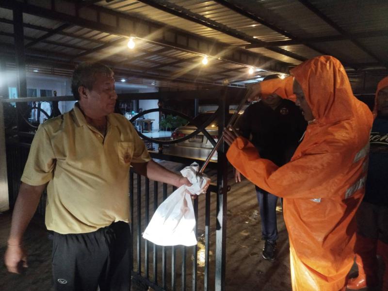 รายละเอียด : วันจันทร์ ที่ 8 กันยายน 2568 เวลา 22.10 น. ระดับน้ำสะพานหลังวัดเขาโบสถ์ อยู่ที่ประมาณ 1 เมตร 40 เซนติเมตร ตามที่เกิดสถานการณ์น้ำท่วมในพื้นที่เทศบาลตำบลทับมา นายสุทิน แก้วประถม นายกเทศมนตรีตำบลทับมา ได้มอบหมายให้งานป้องกันและบรรเทาสาธารณภัย สำนักปลัด เทศบาลตำบลทับมา ดำเนินการจับสัตว์เลื้อยคลานที่หนีน้ำเข้าบ้านเรือนของประชาชน เพื่อป้องกันอันตรายและบรรเทาความเดือดร้อนแก่ประชาชนในพื้นที่ ทั้งนี้ ประชาชนที่ประสบปัญหาหรือประสงค์ขอความช่วยเหลือสามารถติดต่อ ศูนย์ช่วยเหลือประชาชน เทศบาลตำบลทับมา ได้ที่หมายเลขโทรศัพท์ 09-2903-4000 หรือ 0-3866-3168
