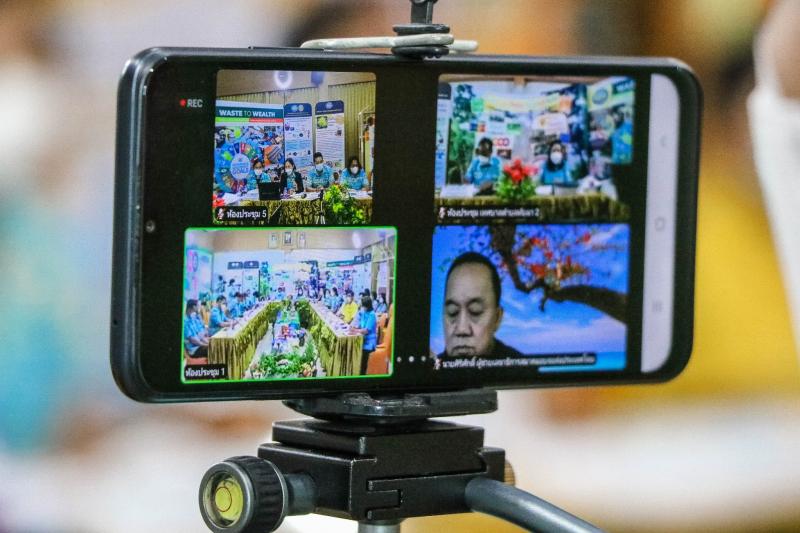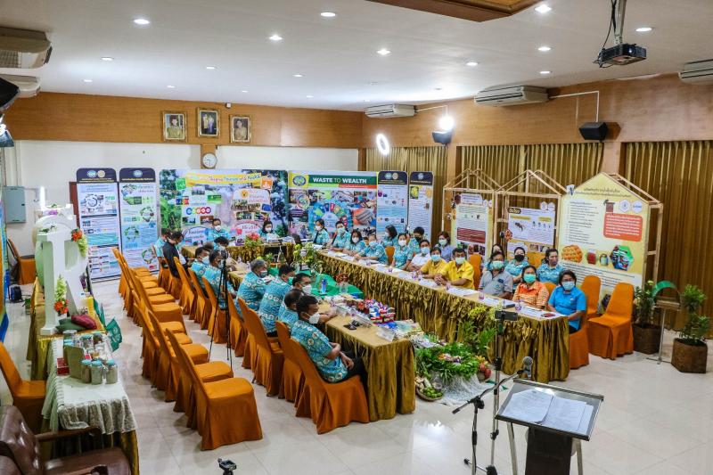 รายละเอียด : วันที่ 12 กรกฎาคม 2565 นายประเสริฐ วงษ์ศรี นายกเทศมนตรีตำบลทับมา พร้อมด้วยคณะผู้บริหาร สมาชิกสภาเทศบาลตำบลทับมา หัวหน้าส่วนราชการ เจ้าหน้าที่เทศบาลตำบลทับมา ผู้นำชุมชนในพื้นที่ กลุ่มวิสาหกิจผู้เลี้ยงผึ้งชันโรง กลุ่มวิสาหกิจชุมชนกลุ่มส่งเสริมอาชีพผลิตสมุนไพรไข่หอยตำบลทับมา กลุ่มฺวิสาหกิจชุมชนบ้านสะพานหิน ศูนย์บริการและถ่ายทอดเทคโนโลยีการเกษตรประจำตำบลทับมา สมาคมเพื่อนชุมชน และผู้ที่เกี่ยวข้อง ได้ร่วมต้อนรับคณะอนุกรรมการประเมินองค์กรปกครองส่วนท้องถิ่นที่มีการบริหารจัดการที่ดี ประเภทโดดเด่น ประจำปี พ.ศ. 2565 และร่วมชี้แจงตอบข้อซักถาม ผ่านสื่ออิเล็กทรอนิกส์ (Application ZOOM Cloud Meetings) สำหรับการประเมินผลงานในรอบสุดท้าย โดยมีนางสาวเรวีญา ขจิตเนติธรรม ปลัดเทศบาลตำบลทับมา เป็นผู้นำเสนอผลงานการบริหารจัดการที่ดี และผลงานนวัตกรรม ขยะ มั่งคั่ง ยั่งยืน (Waste to Wealth) และนำเสนอนวัตกรรมแต่ละชุมชนที่มีการต่อยอดจนเกิดความเข้มแข็ง ได้แก่ นวัตกรรมหมอนหลอดช่วยผู้ป่วยติดเตียง นวัตกรรมสมุนไพรไข่หอย ศูนย์การเรียนรู้วัดทับมา และกลุ่มวิสาหกิจชุมชนผู้เลี้ยงชันโรงบ้านทับมา ทั้งนี้ หากผลการประเมินฯ ดังกล่าวมีข้อสรุปจะแจ้งให้ทราบต่อไป