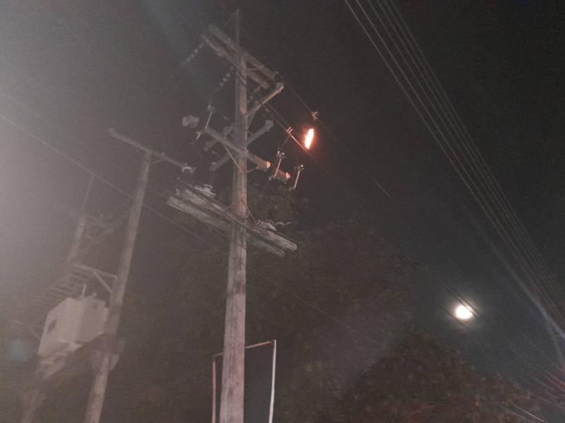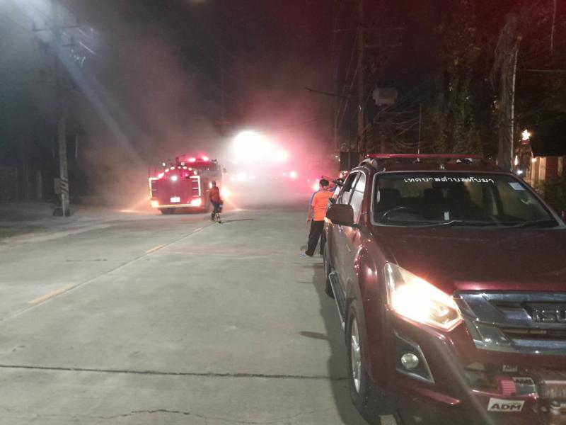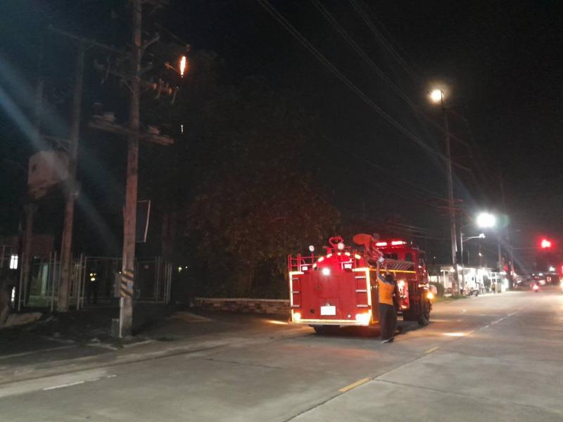 เทศบาลตำบลทับมา ลงพื้นที่ระงับเหตุเพลิงไหม้สายไฟฟ้า ใกล้หม้อแปลงไฟฟ้า หมู่ที่ 2 บ้านแหลมมะขาม