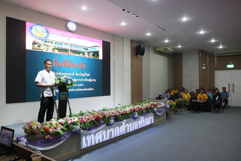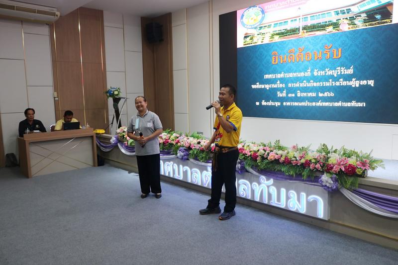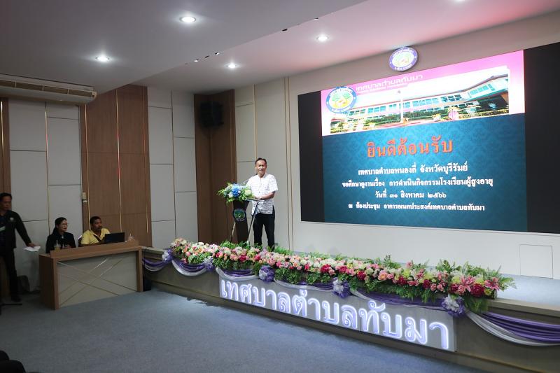 รายละเอียด : วันที่ 31 สิงหาคม 2566 เวลา 13.30 น. นายประเสริฐ วงษ์ศรี นายกเทศมนตรีตำบลทับมา กล่าวต้อนรับคณะศึกษาดูงาน จากเทศบาลตำบลหนองกี่ อำเภอหนองกี่ จังหวัดบุรีรัมย์ ***นำโดยนางสาวนันทนิตย์ จิตหนักแน่น นายกเทศมนตรีตำบลหนองกี่ ได้นำคณะศึกษาดูงานประกอบด้วย คณะผู้บริหาร หัวหน้าส่วนราชการ สมาชิกสภาเทศบาล และผู้สูงอายุในพื้นที่เทศบาลตำบลหนองกี่ จำนวน 160 คน มาศึกษาดูงานเรื่อง การดำเนินกิจกรรมโรงเรียนผู้สูงอายุ โดยมีนางสาวเรวีญา ขจิตเนติธรรม ปลัดเทศบาลตำบลทับมา เป็นผู้บรรยายพิเศษแก่คณะศึกษาดูงานในครั้งนี้ ณ อาคารอเนกประสงค์เทศบาลตำบลทับมา (ตึก 5 ชั้น)