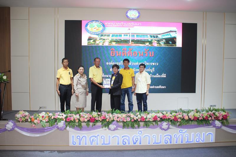 เทศบาลตำบลทับมา ต้อนรับคณะศึกษาดูงานจากองค์การบริหารส่วนตำบลวิหารขาว อำเภอท่าช้าง จังหวัดสิงห์บุรี