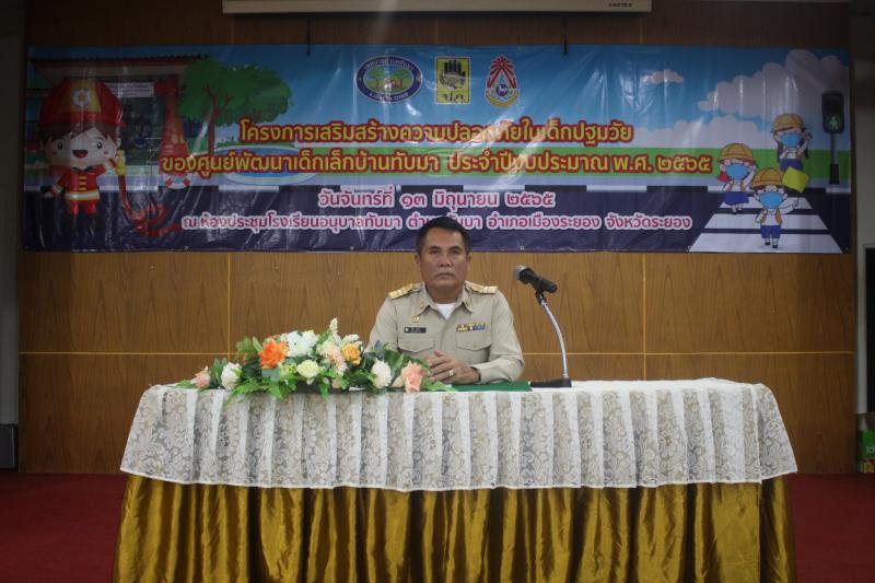 รายละเอียด : วันที่ 13 มิถุนายน 2565 เวลา 09.00 น. นายประเสริฐ วงษ์ศรี นายกเทศมนตรีตำบลทับมา มอบหมายให้นายฉัตร แก่กล้า รองนายกเทศมนตรีตำบลทับมา เป็นประธานเปิดโครงการเสริมสร้างทักษะความปลอดภัยของเด็กปฐมวัยในศูนย์พัฒนาเด็กเล็กบ้านทับมา ประจำปีงบประมาณ พ.ศ. 2565 มีนายวีระชัย ภักดีจอหอ ผู้อำนวยการกองการศึกษา เป็นผู้กล่าวรายงานวัตถุประสงค์การจัดโครงการฯ ซึ่งจัดขึ้นเพื่อให้เด็กนักเรียนในศูนย์พัฒนาเด็กเล็กบ้านทับมา มีความรู้ ความเข้าใจในขั้นตอน และวิธีการเสริมสร้างทักษะความปลอดภัยให้เกิดกับตนเอง ฝึกปฏิบัติและสามารถเอาตัวรอดได้เมื่อเกิดเหตุการณ์จริง ภายในงานมีการบรรยายให้ความรู้และฝึกปฏิบัติเกี่ยวกับการเรียนรู้เอาตัวรอดจากเหตุอัคคีภัย การติดอยู่ในรถ และการจมน้ำ โดยวิทยากรผู้ทรงคุณวุฒิจากสำนักงานป้องกันและบรรเทาสาธารณภัยจังหวัดระยองให้กับครู ผู้ปกครองและนักเรียนศูนย์พัฒนาเด็กเล็กบ้านทับมา ณ ห้องประชุมโรงเรียนอนุบาลทับมา อ.เมืองระยอง จ.ระยอง