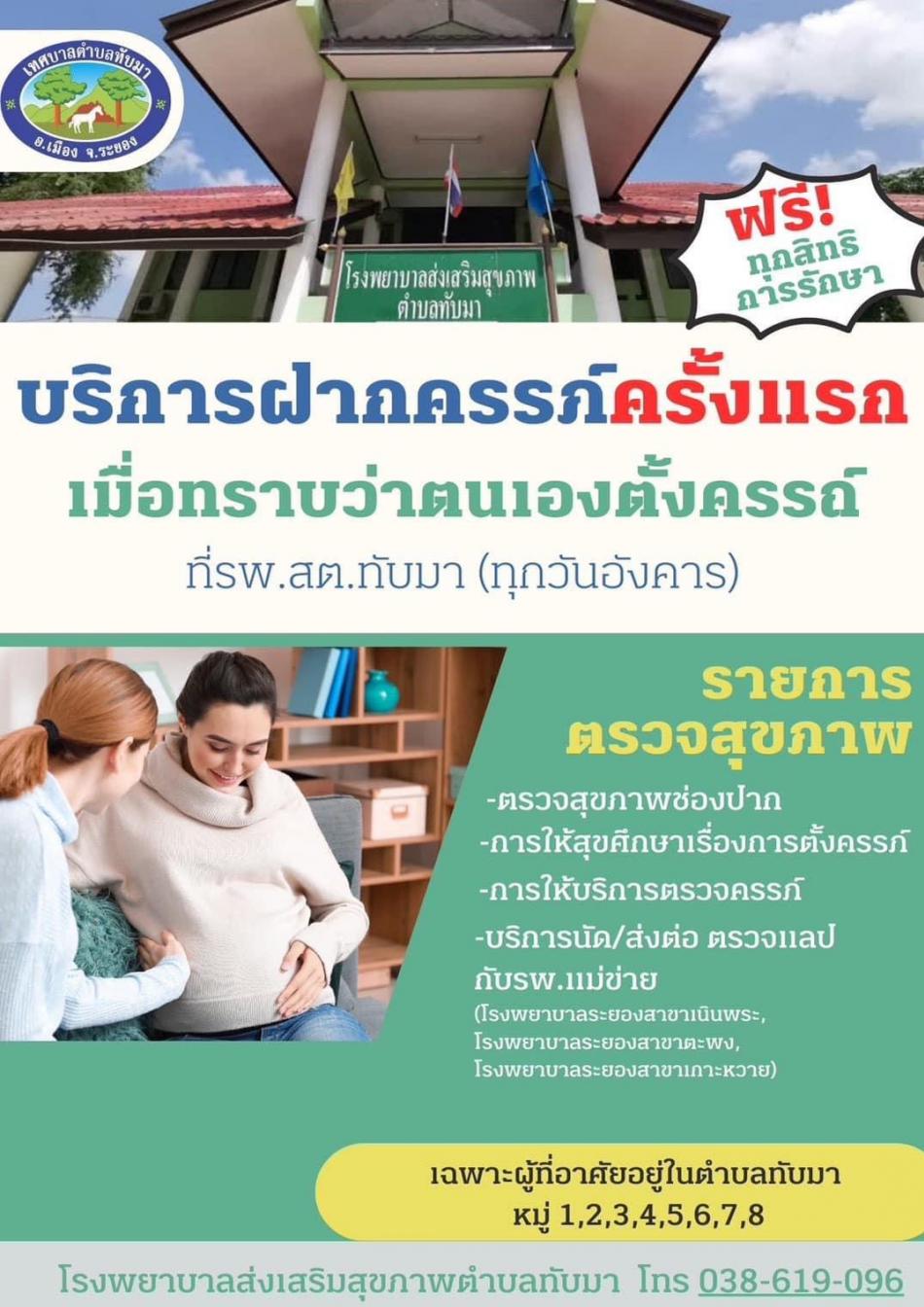 โรงพยาบาลส่งเสริมสุขภาพตำบลทับมา กองสาธารณสุขและสิ่งแวดล้อม เทศบาลตำบลทับมา ให้บริการฝากครรภ์ [16 สิงหาคม 2566]