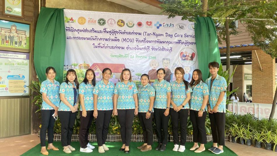 เทศบาลตำบลทับมา เข้าร่วมพิธีเปิดศูนย์ส่งเสริมและฟื้นฟูผู้สูงวัยตำบลท่างาม (Tar-Ngam Daycare Service) ตำบลท่างาม อำเภออินทร์บุรี จังหวัดสิงห์บุรี [24 สิงหาคม 2566]