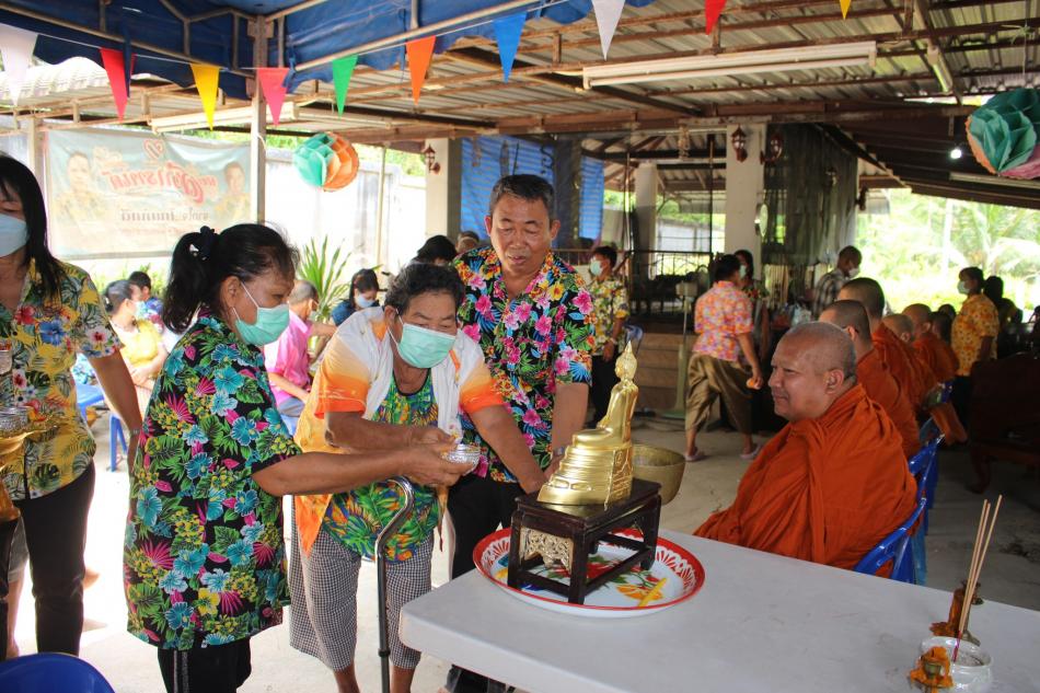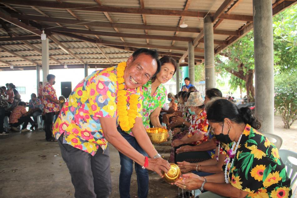 เทศบาลตำบลทับมา ร่วมกับ คณะกรรมการกองทุนไฟฟ้า ตำบลทับมา ดำเนินโครงการรดน้ำดำหัวขอพรผู้สูงอายุ ชุมชนบ้านเขาโบสถ์ หมู่ที่ 7 ประจำปีงบประมาณ 2566 [17 เมษายน 2566]