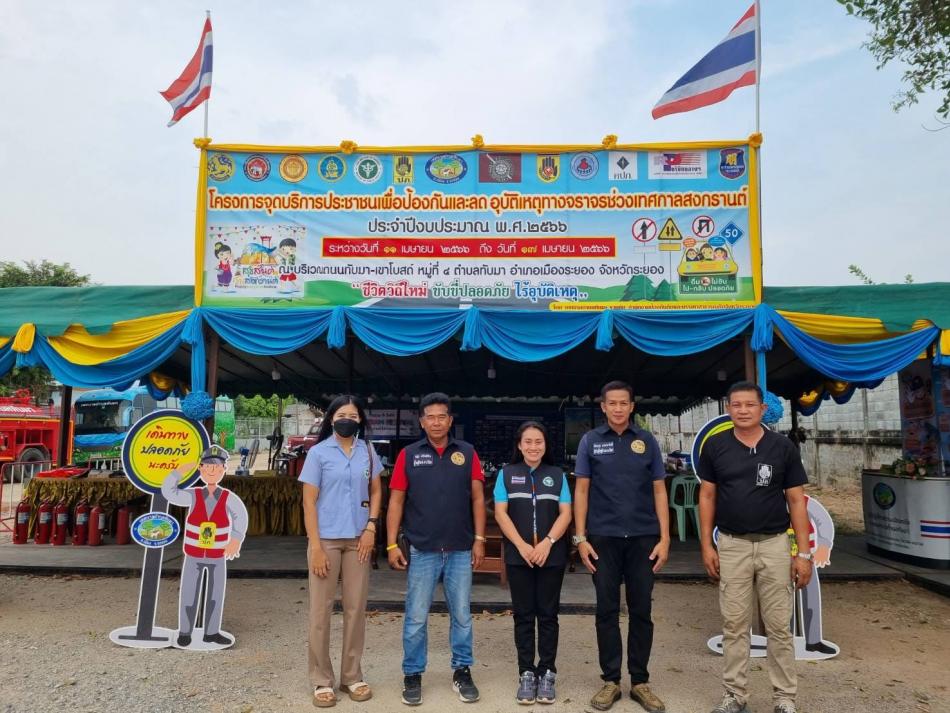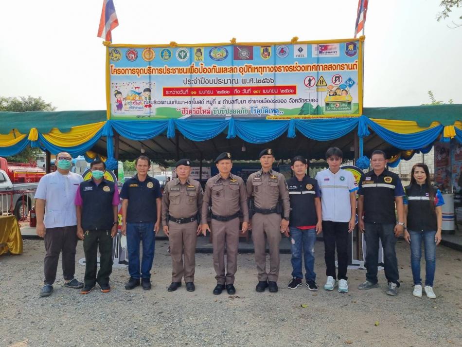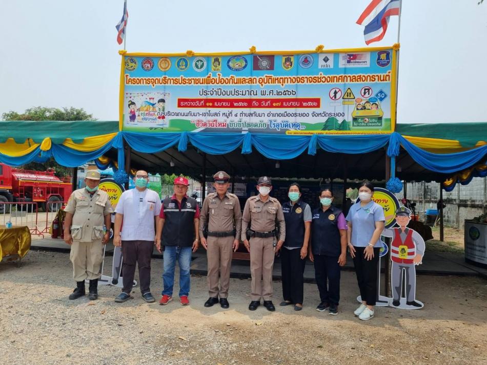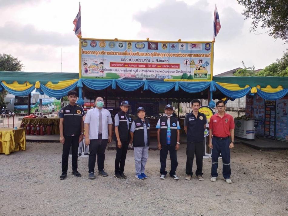 งานป้องกันและบรรเทาสาธารณภัย เทศบาลตำบลทับมา ดำเนินกิจกรรมโครงการจุดบริการประชาชนเพื่อป้องกันและลดอุบัติเหตุทางจราจรช่วงเทศกาลสงกรานต์ พ.ศ. 2566 [16 เมษายน 2566]