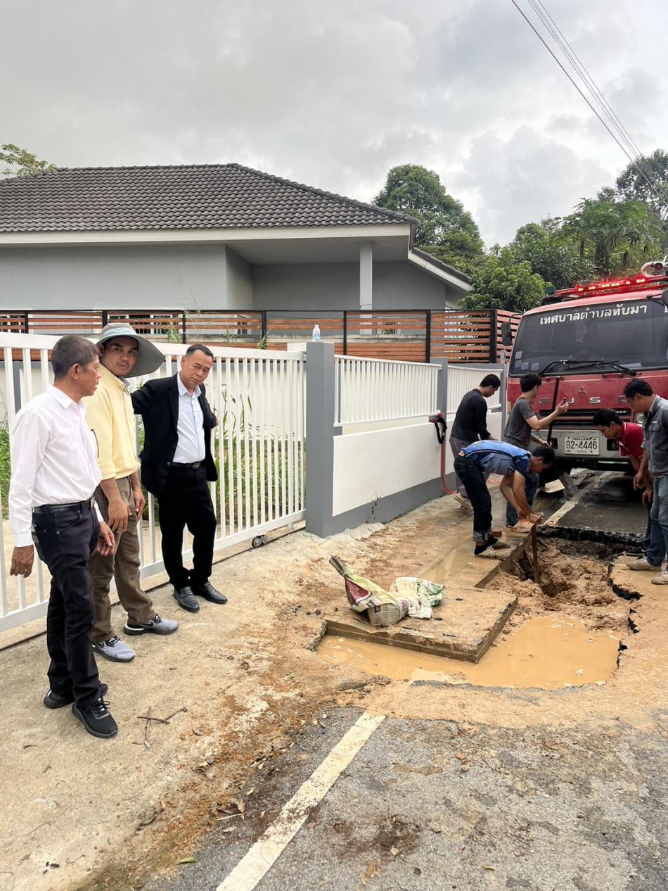 เทศบาลตำบลทับมา ลงพื้นที่เร่งซ่อมแซมถนนสายยางปีนตอ ซอย 1 หลังเกิดการยุบตัวของถนน [14 ตุลาคม 2568]