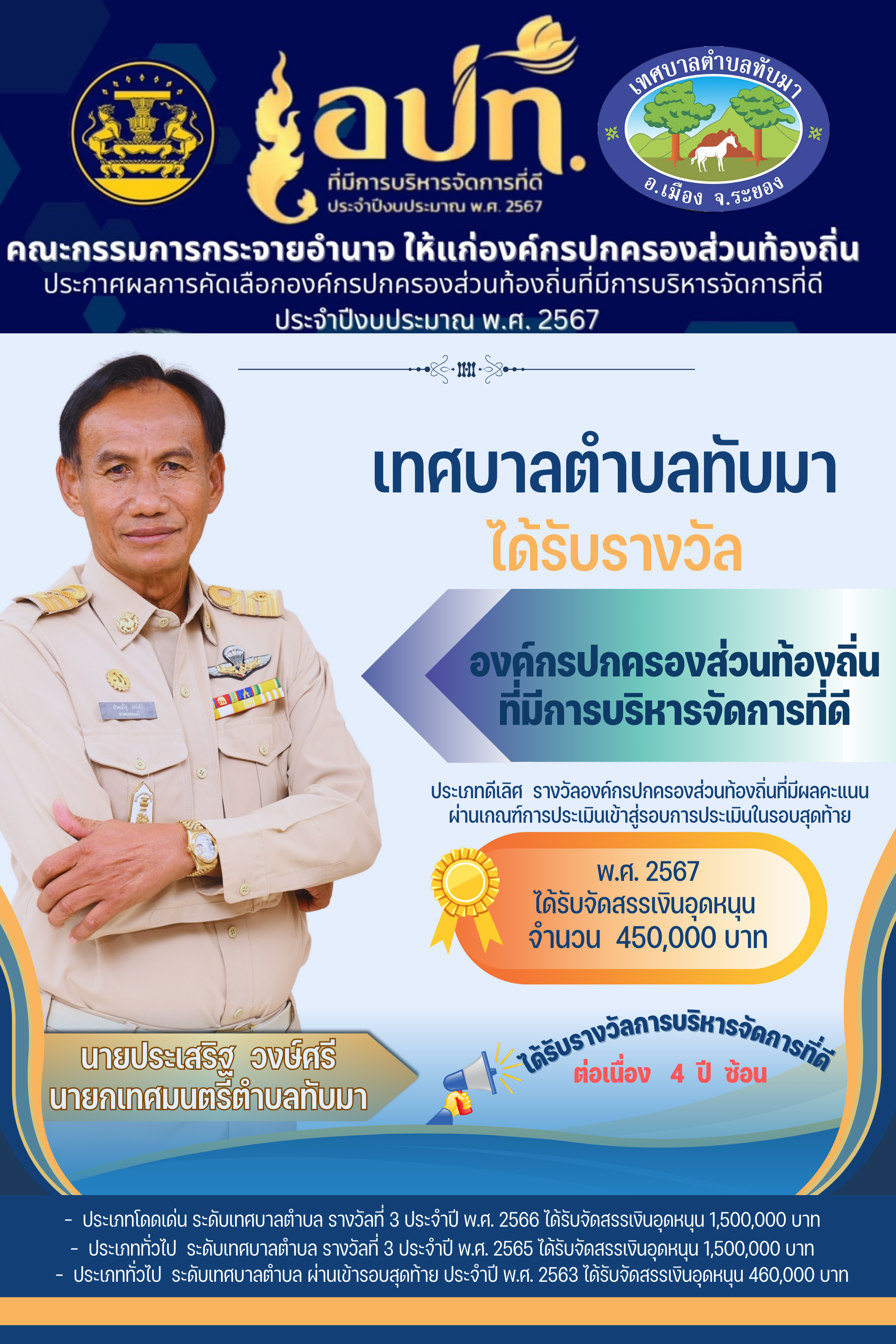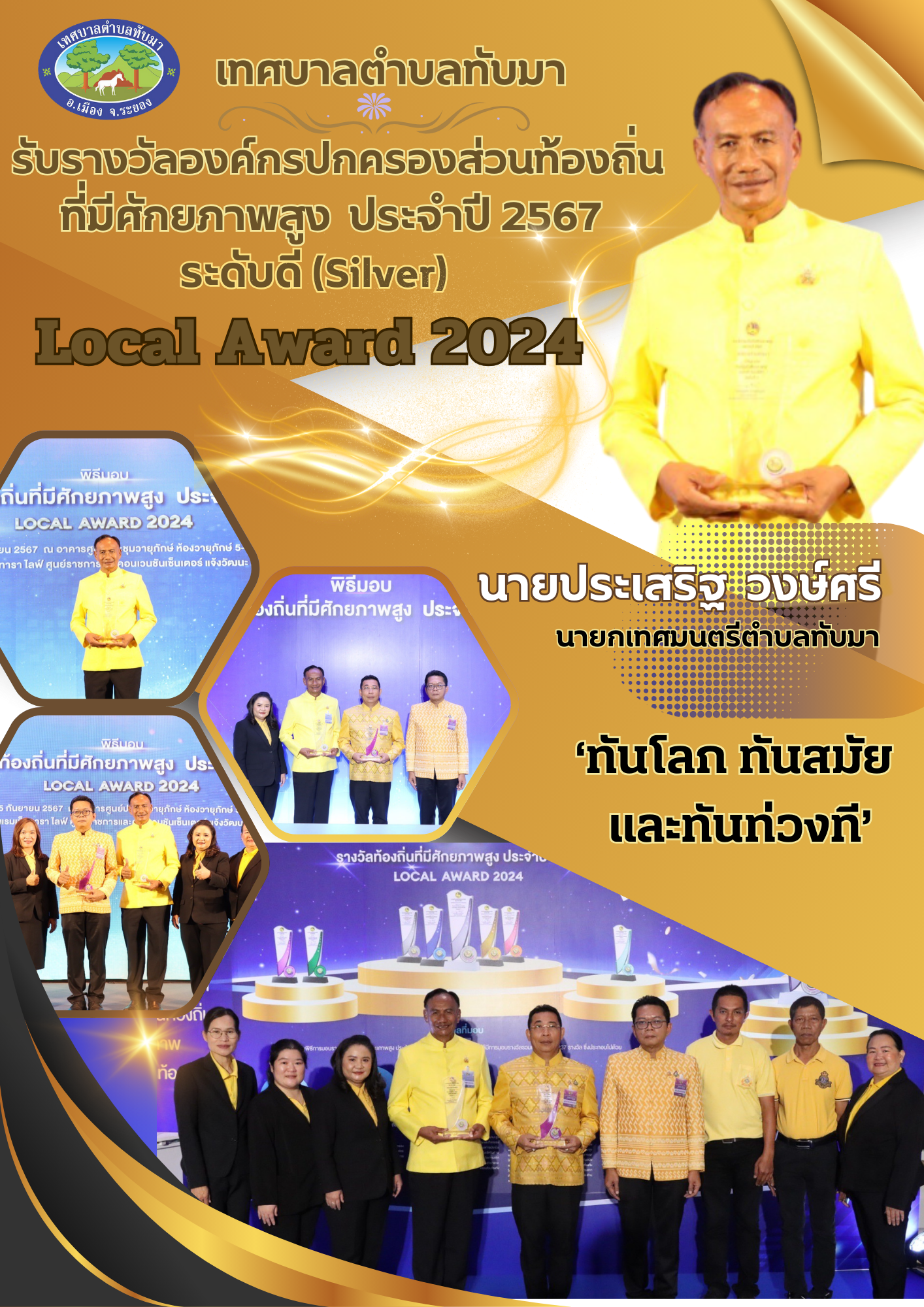 "เทศบาลตำบลทับมา คว้ารางวัลองค์กรปกครองส่วนท้องถิ่น ที่มีศักยภาพสูง ระดับดี (Silver) ประจำปี 2567" [25 กันยายน 2567]