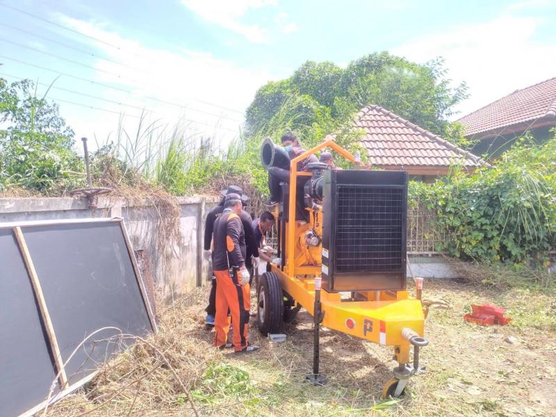 ทต.ทับมา ติดตั้งเครื่องสูบน้ำ เตรียมความพร้อมเพื่อป้องกันปัญหาน้ำท่วมในเขตพื้นที่ตำบลทับมา