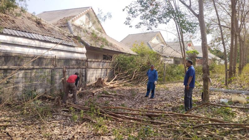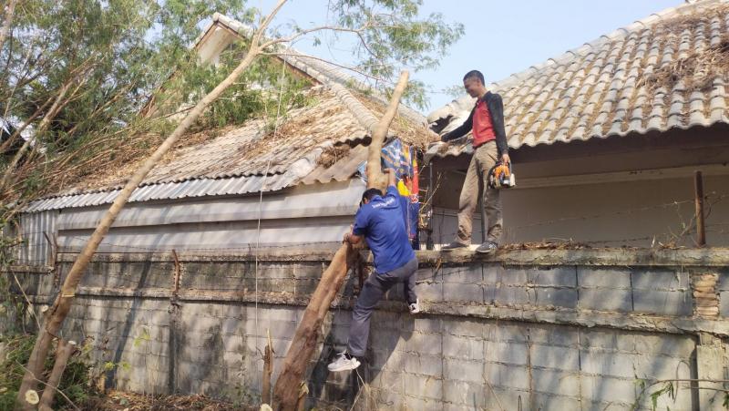"เทศบาลตำบลทับมา ลงพื้นที่ช่วยประชาชนแก้ไขปัญหาเรื่องต้นไม้พาดหลังคา หมู่บ้านแมกไม้ ตำบลทับมา หมู่ที่ 6"
