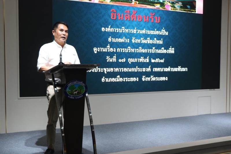 รายละเอียด : วันที่ 17 กุมภาพันธ์ 2568 เวลา 13.30 น. นายฉัตร แก่กล้า รองนายกเทศมนตรีตำบลทับมา กล่าวต้อนรับคณะศึกษาดูงานจากองค์การบริหารส่วนตำบลม่อนปิ่น อำเภอฝาง จังหวัดเชียงใหม่ นำโดย นายศิรภพ สุจาคำ รองนายกองค์การบริหารส่วนตำบลม่อนปิ่น พร้อมด้วยคณะผู้บริหาร สมาชิกสภาฯ หัวหน้าส่วนราชการ พนักงานและเจ้าหน้าที่ จำนวน 35 คน เข้าศึกษาดูงานและแลกเปลี่ยนเรียนรู้ในหัวข้อเรื่อง " การบริหารจัดการบ้านเมืองที่ดี ” โดยมี นางสาวเรวีญา ขจิตเนติธรรม ปลัดเทศบาล เป็นผู้บรรยายพิเศษแก่คณะศึกษาดูงาน ณ ห้องประชุมชั้น 5 อาคารอเนกประสงค์เทศบาลตำบลทับมา (ตึก 5 ชั้น)