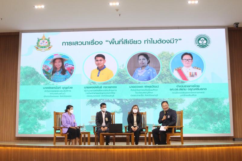 รายละเอียด : วันที่ 1 มีนาคม 2566 นายประเสริฐ วงษ์ศรี นายกเทศมนตรีตำบลทับมา มอบหมายให้นางสาวเรวีญา ขจิตเนติธรรม ปลัดเทศบาลตำบลทับมา พร้อมด้วยนางพิชชานันท์ บุญช่วย นักวิชาการสาธารณสุขปฏิบัติการ เข้าร่วมพิธีรับมอบโล่รางวัลพร้อมรับใบประกาศเกรียติคุณ และร่วมเสวนาเรื่องพื้นที่สีเขียวทำไมต้องมี.....? พิธีมอบโล่รางวัลการจัดการพื้นที่สีเขียว จัดโดยกรมส่งเสริมคุณภาพสิ่งแวดล้อม มีนายสมศักดิ์ สรรพโกศลกุล อธิบดีกรมส่งเสริมคุณภาพสิ่งแวดล้อม เป็นประธานในพิธีฯ พร้อมมอบโล่และใบประกาศเกียรติคุณให้แก่หน่วยงาน องค์กรต่างๆ ซึ่งเทศบาลตำบลทับมาได้รับรางวัลการจัดการพื้นที่สีเขียว ประจำปี 2565 “ระดับดีเยี่ยม” โดยมีนางสาวเรวีญา ขจิตเนติธรรม ปลัดเทศบาลตำบลทับมา เป็นผู้รับมอบโล่รางวัลและใบประกาศเกียรติคุณในครั้งนี้ ณ ห้องประชุมอารีย์สัมพันธ์ ชั้น 3 อาคารกรมส่งเสริมคุณภาพสิ่งแวดล้อม กรุงเทพมหานคร
