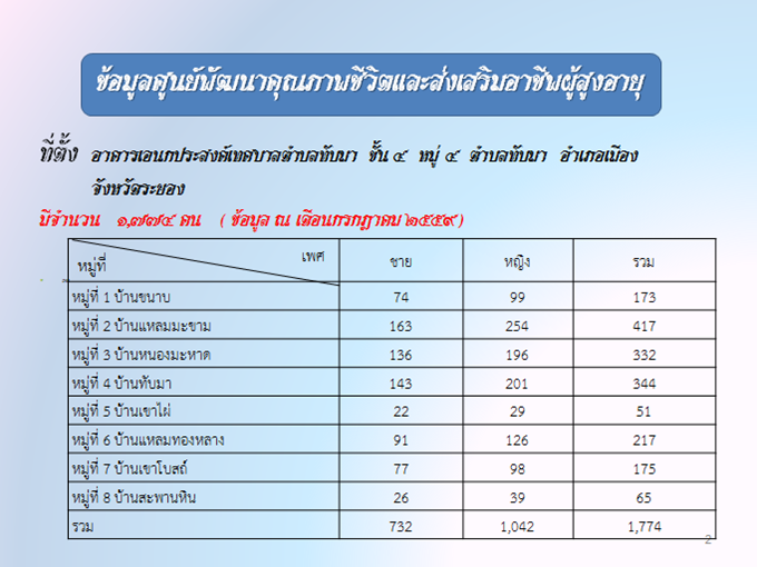 ข้อมูลศูนย์พัฒนาคุณภาพชีวิตและส่งเสริมอาชีพผู้สุงอายุ