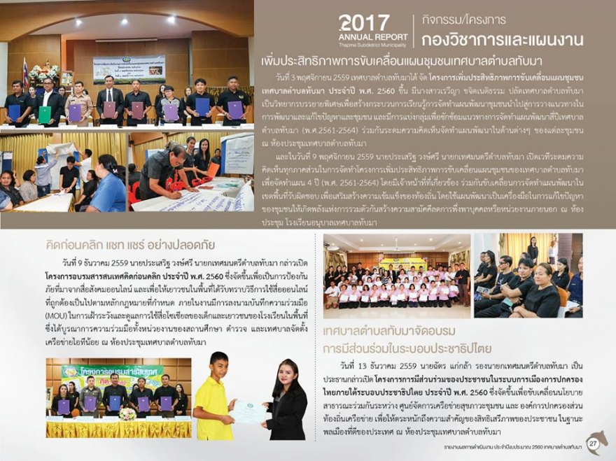 รายงานผลการดำเนินงานเทศบาลตำบลทับมา ประจำปีงบประมาณ พ.ศ.2560