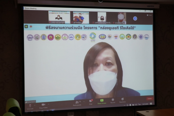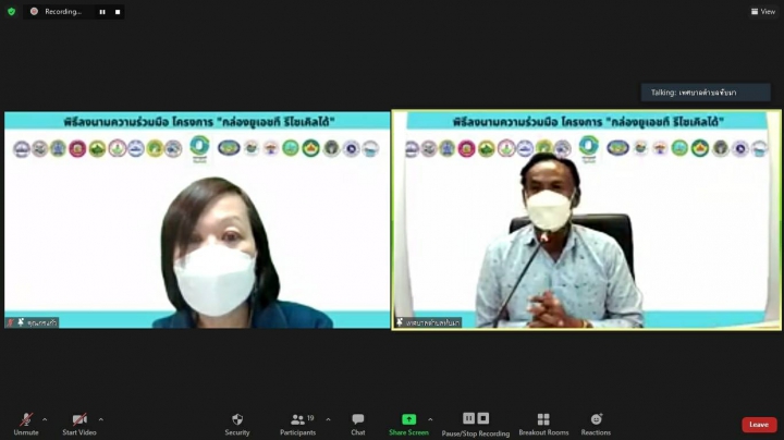 รายละเอียด : วันที่ 17 ธันวาคม 2564 เวลา 10.00 น. นายประเสริฐ วงษ์ศรี นายกเทศมนตรีตำบลทับมา ร่วมลงนามบันทึกข้อตกลงความร่วมมือ (MOU) ระหว่างเทศบาลตำบลทับมา กับโครงการ “กล่องยูเอสที รีไซเคิลได้” เพื่อส่งเสริมให้หน่วยงานภาครัฐ ภาคเอกชน ภาคประชาชนในเขตพื้นที่ ร่วมขับเคลื่อนการดำเนินการ โครงการ “กล่องยูเอชที รีไซเคิลได้” ทั้งทางตรงและทางอ้อม ประชาสัมพันธ์เพื่อขอความร่วมมือในการคัดแยกกล่องยูเอชทีจากทุกภาคส่วน เป็นจุดรับ รวบรวมกล่องยูเอชทีจากภาคส่วนต่าง ๆ ในพื้นที่ และส่งเสริม ผลักดัน ให้เกิดการคัดแยกกล่องยูเอชทีอย่างต่อเนื่องและเป็นรูปธรรม โดย นายประเสริฐ วงษ์ศรี นายกเทศมนตรีตำบลทับมา และนางกรแก้ว เอื้อเฟื้อ ผู้อำนวยการโครงการ “กล่องยูเอชที รีไซเคิลได้” ผ่านระบบการประชุมทางไกล (Zoom Conference) ณ ห้องประชุมสภาเทศบาลตำบลทับมา อำเภอเมืองระยอง จังหวัดระยอง