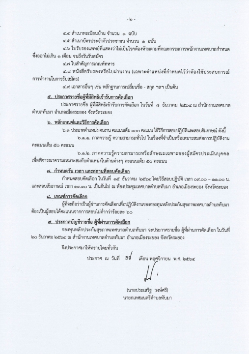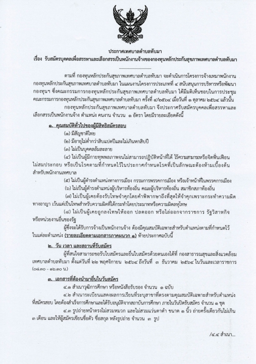 แจ้งประชาสัมพันธ์ ประกาศเทศบาลตำบลทับมา เรื่อง รับสมัครบุคคลเพื่อสรรหาและเลือกสรรเป็นพนักงานจ้างของกองทุนหลักประกันสุขภาพเทศบาลตำบลทับมา
