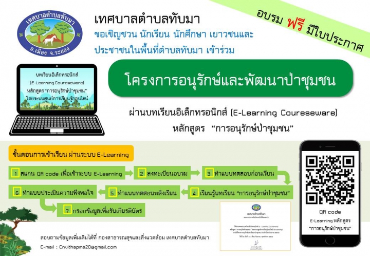 ชื่อเรื่อง : เชิญชวนเข้าร่วมอบรมโครงการอนุรักษ์และพัฒนาป่าชุมชนผ่านบทเรียนอิเล็กทรอนิกส์