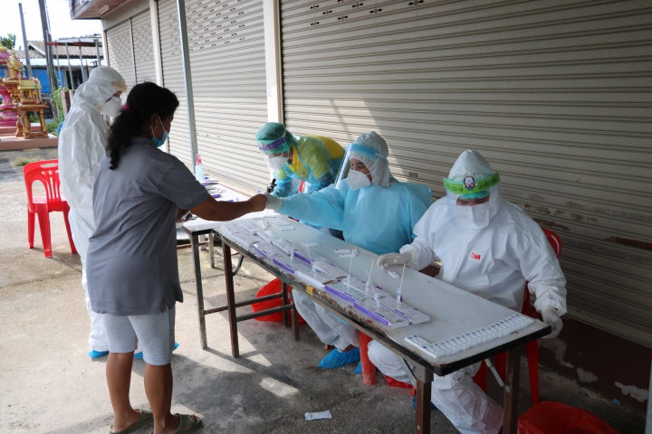 รายละเอียด : วันที่ 6 กันยายน 2564 เวลา 14.30 น. นายประเสริฐ วงษ์ศรี นายกเทศมนตรีตำบลทับมา มอบหมายให้นายสรวิชญ์ เพชรนคร รองปลัดเทศบาล พร้อมด้วยเจ้าหน้าที่จากโรงพยาบาลส่งเสริมสุขภาพตำบลทับมา กองสาธารณสุขและสิ่งแวดล้อม ลงพื้นที่ตรวจหาเชื้อโดยใช้ชุดทดสอบเอทีเค (Antigen Test Kit :ATK) คัดกรอง รู้ผลไวภายใน 15-30 นาที ให้กับประชาชนกลุ่มเสี่ยงจำนวน 130 คน ผลเป็นบวก 16 คน จะได้นำเข้าสู่ระบบการดูแลควบคุม และตรวจยืนยันซ้ำด้วยวิธีอาร์ทีพีซีอาร์ (RT-PCR) ก่อนยืนยันยอดติดเชื้อต่อไป พร้อมทั้งดำเนินการฉีดพ่นน้ำยาฆ่าเชื้อเพื่อป้องกันเชื้อไวรัสโคโรนา 2019 (COVID-19) ตามมาตรการเข้มข้นที่เทศบาลตำบลทับมา ดำเนินการอย่างต่อเนื่อง ทั้งนี้เพื่อเร่งควบคุมโรคติดเชื้อไวรัสโคโรนา 2019 (COVID – 19) ณ หมู่บ้านเสริมทรัพย์ หมู่ที่ 6 ตำบลทับมา อำเภอเมืองระยอง จังหวัดระยอง